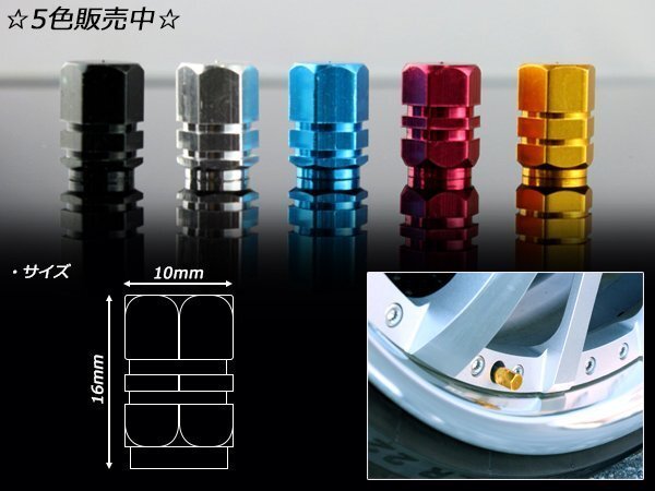 アルミニウム製 汎用エアバルブキャップ 六角のスタンダードなデザインで愛車のワンポイントアイテムに! 全5色販売中です。※出品はタイトルのカラーです。 他のカラーは⇒ こちら |