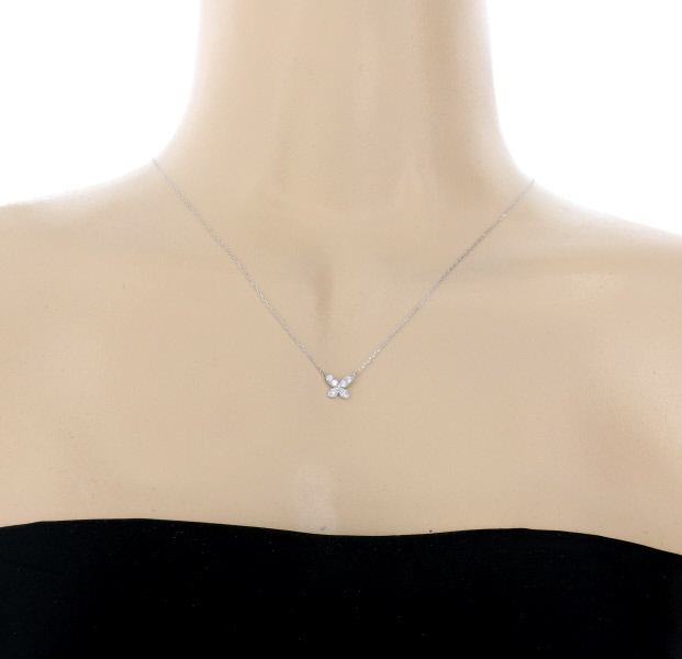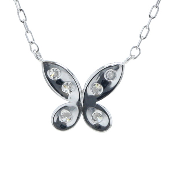 | 商品紹介 | K18ホワイトゴールド製のネックレスです。 長さは約46cmで、胸元にゆったりと映えるサイズ感です。 0.15ctのダイヤモンドをあしらった蝶モチーフのデザインです。 繊細なバタフライのフォルムに、ダイヤモンドの煌めきが軽やかな印象を添えます。 ホワイトゴールドの清らかな光沢と調和した、上品でフェミニンなジュエリーです。 |