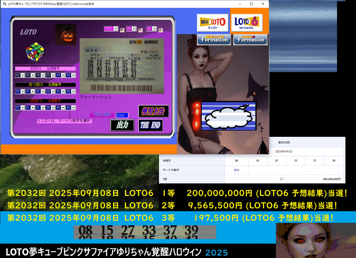 ■■■■ LOTO夢キューブピンクサファイアゆりちゃん覚醒ハロウィン2025 LOTO6 予想結果 ■■■■