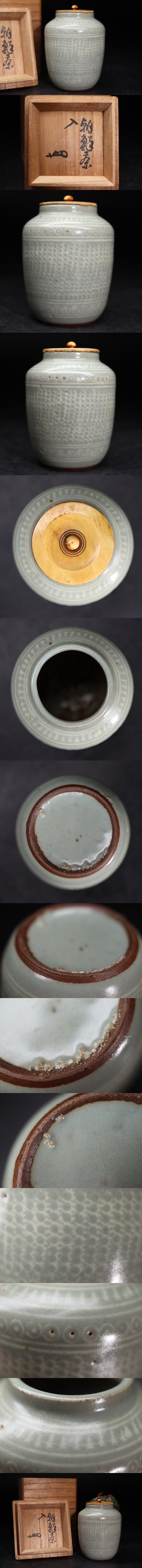 | 「 朝鮮 茶入 」 花押 識箱 仕覆 即中斎 ?/ 朝鮮古美術 李朝 粉青沙器 白象嵌 茶壺 茶器 煎茶道具 .G2559 |