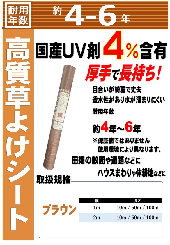 【仕様】 ブラウン 2mX50m長さ 4~6年対候