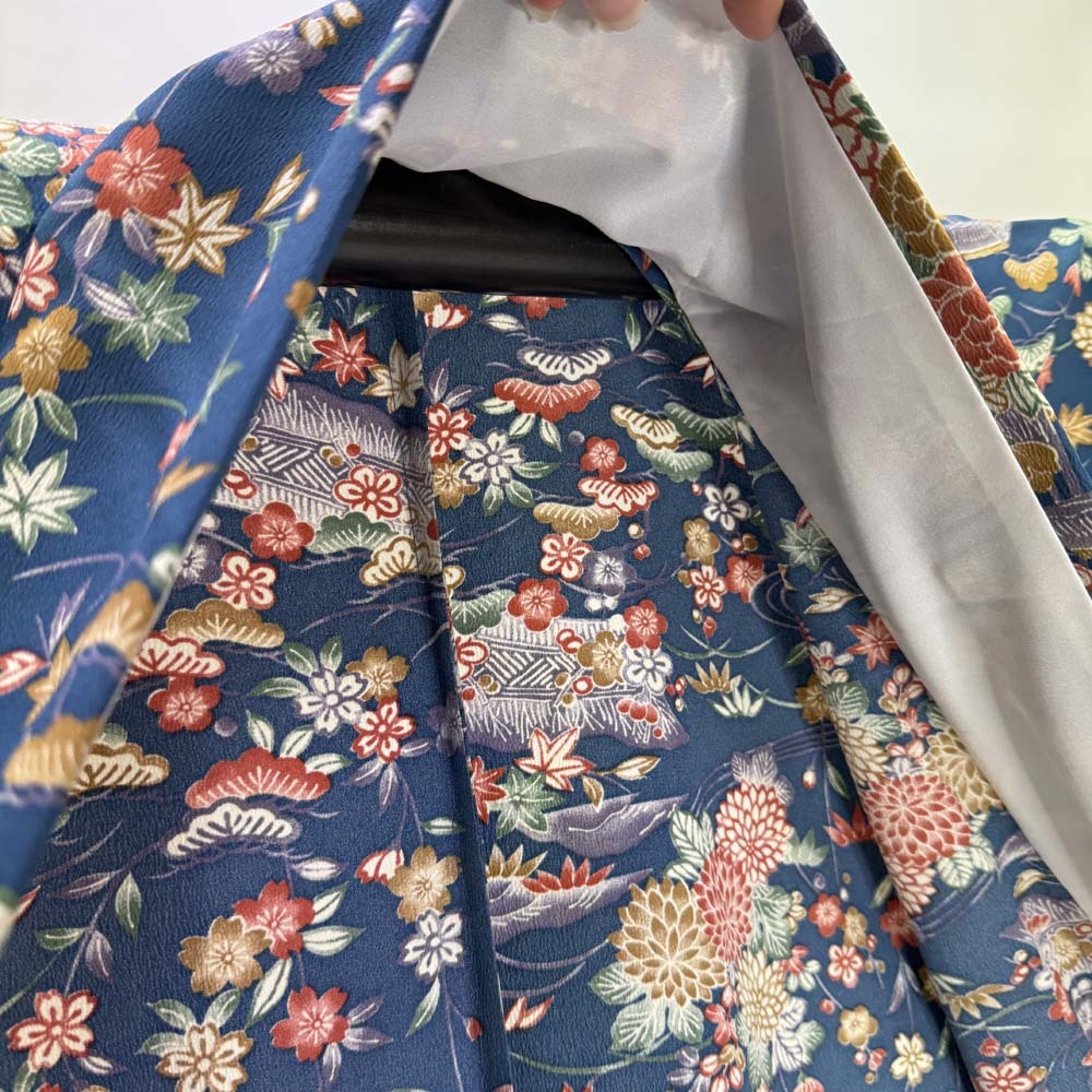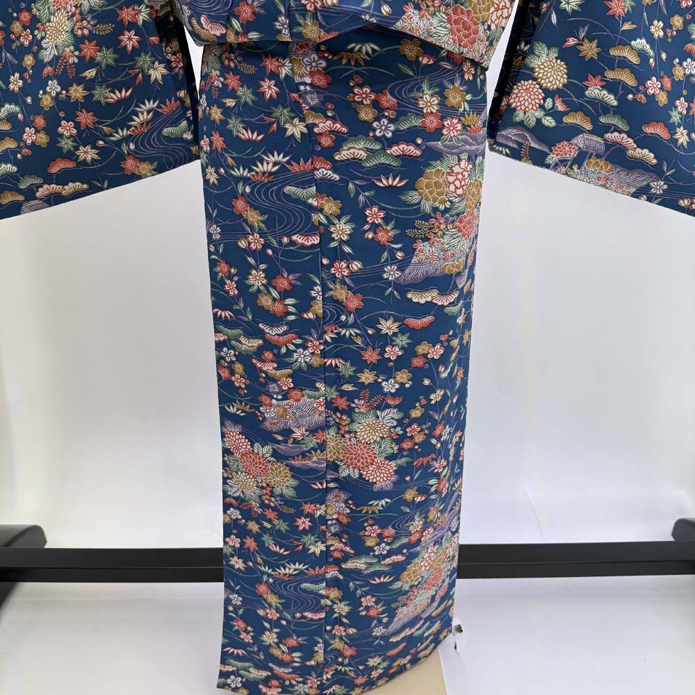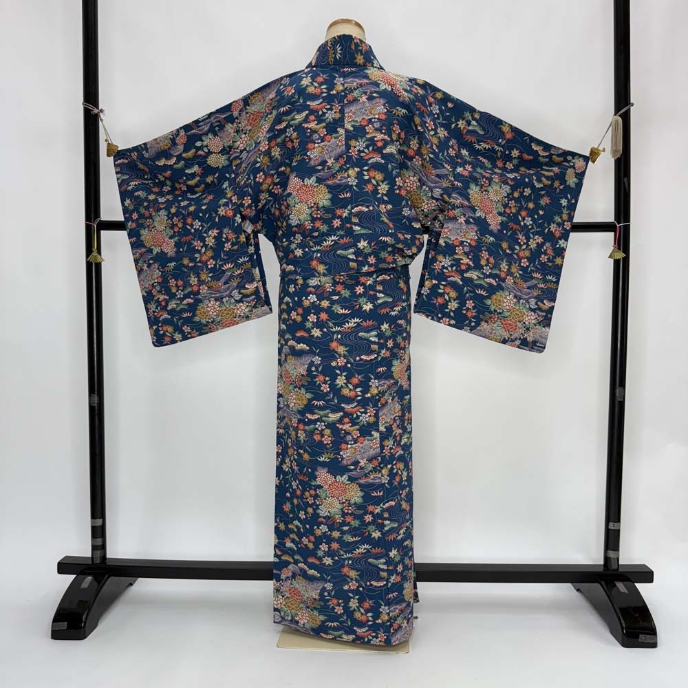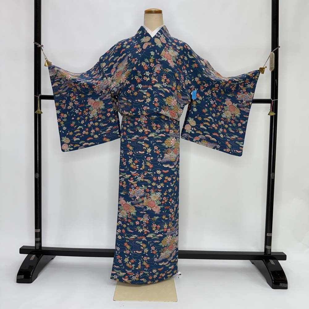 | 商品名 | 小紋 単衣 洗える着物 裄65.7cm 身丈159cm 花柄 お洒落着 普段着 ポリエステル 緑 美品 M サイズ 4599 |