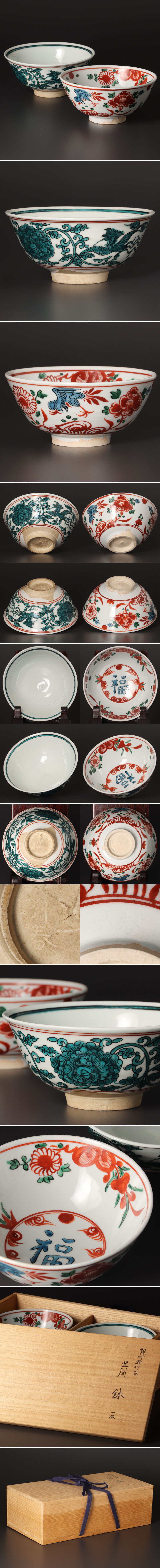 華やかな絵付けの鉢、二客セットです。大変美しい仕上がりです。 ★商品は初代川瀬竹春の作品である事を保証致します。 |