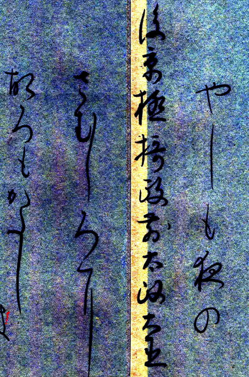 入手したものであることがわかりました。日本の和紙は(す)く製法であるため和紙の繊維が断層画像写真によって一本一本が立体的に見えます。オランダ渡来の髪と性質が異なるのはこのためです。は茶会用の掛軸から外され海外展示のために再表装をしております。掛軸や屏風にすることが可能なように、「Removable Paste(再剥離用糊)」を使用しているため、自筆の書に影響をあたえずに、容易に「剥離」することができるような特殊な表装となっております。