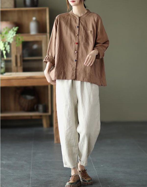M: 着丈58-65cm バスト104cm 袖63cm L: 着丈59-66cm バスト108cm 袖64cm XL: 着丈60-67cm バスト112cm 袖65cm 2XL: 着丈61-68cm バスト116cm 袖66cm 素材: 綿麻 |