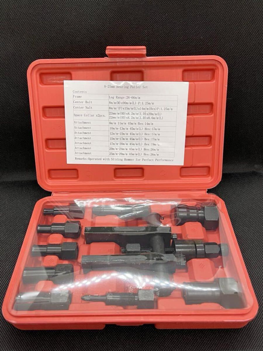 | 商品説明 | 数ある商品の中からご覧いただき誠にありがとうございます。 【状態】 新品未使用 多用途ベアリング交換ツールセット 車やオートバイ、機械の回転部に欠かせないベアリングを簡単に交換するために設計されています。 特に軸型ベアリングの取り外しに威力を発揮し、プーラーを使用することで、穴に埋まったベアリングもスムーズに取り出せます。 エンジンやミッションのオーバーホールにも対応しており、車種やメーカーを問わず、幅広くご利用いただけます。 ※ツールの表面には錆防止のためにオイルが塗布されています。ご使用前にオイルが気になる場合は、軽く拭き取ってからお使いください。拭き取った後は保管時に錆が発生しないようご注意ください。 【使用手順】 ベアリングにABをしっかりと固定します。 正しい位置にセットするとベアリングが固定されますので、Cを差し込んで準備完了です。 六角ボルトをレンチで固定し、14mmナットを時計回りに回すことでベアリングを引き上げます。 ●幅広い対応車種 このツールセットは、内径8mmから29mmまでのベアリングに対応しており、さまざまな車種での交換作業に対応可能です。 ●高品質クロムバナジウム鋼採用 高品質のクロムバナジウム鋼で作られており、耐久性と耐摩耗性に優れた合金を使用しており、 大きな力を加えても変形しにくく、長期間ご使用いただけます。 部品は専用ケースに収納され、コンパクトで場所を取らず、 紛失を防止します。 ●セット内容● 収納ケース ×1 本体フレーム ×1 センターボルト ×1 センターナット ×1 チャック ×7(8-11mm、10-13mm、12-15mm、15-17mm、17-20mm、20-24mm、25-29mm) ケースサイズ:220×150×45mm |