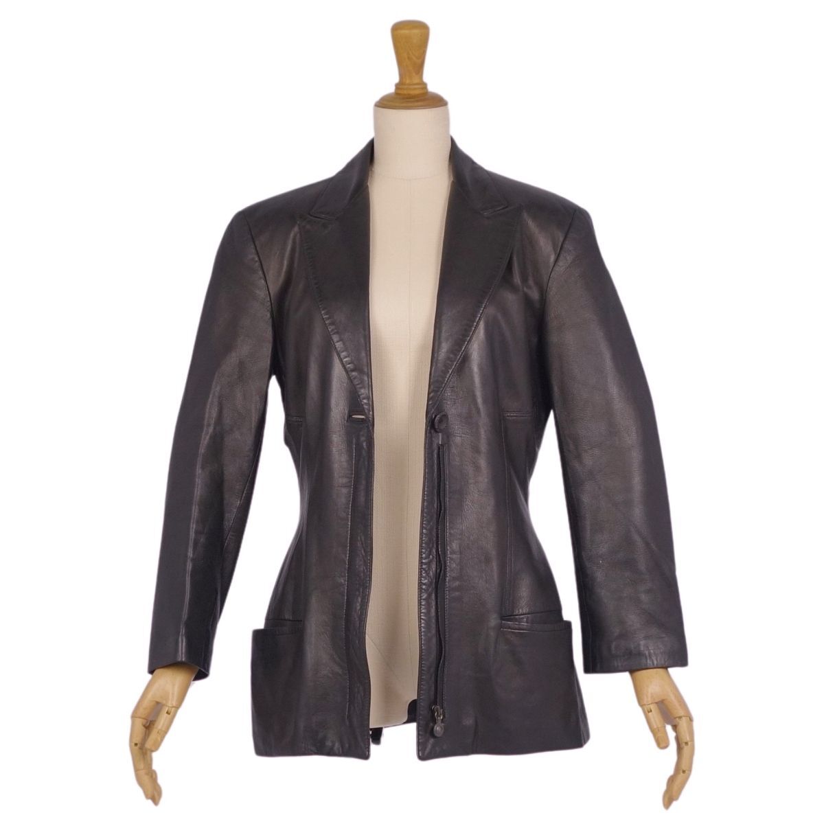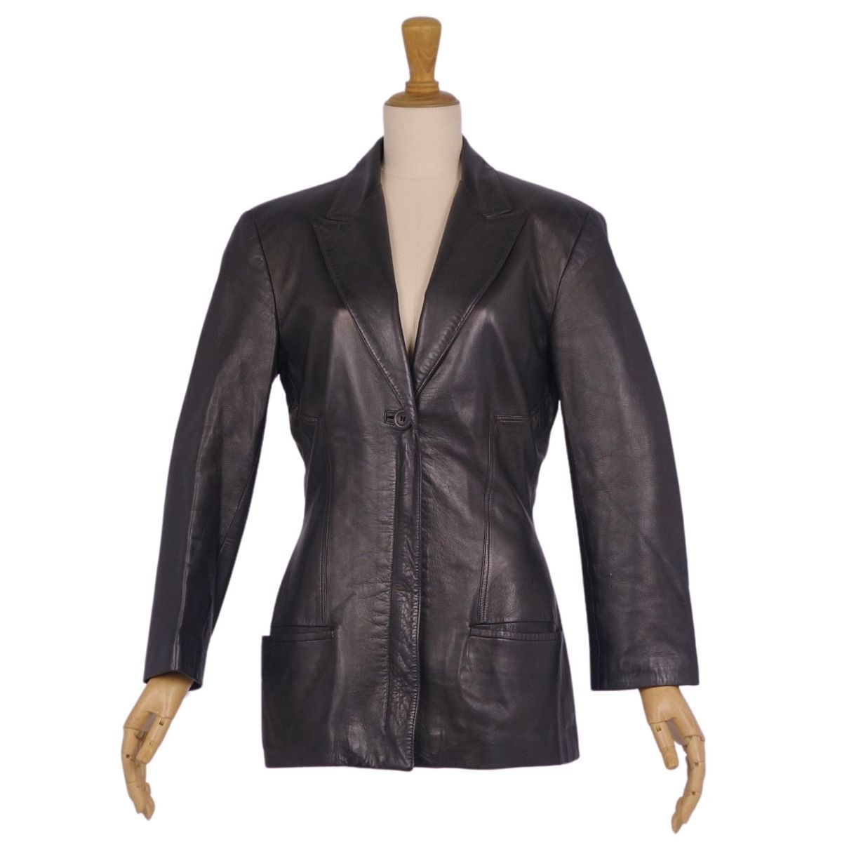 | 美品 Vintage ジャンニヴェルサーチ GIANNI VERSACE ジャケット テーラード メデューサ レザー レディース 40 ブラック |