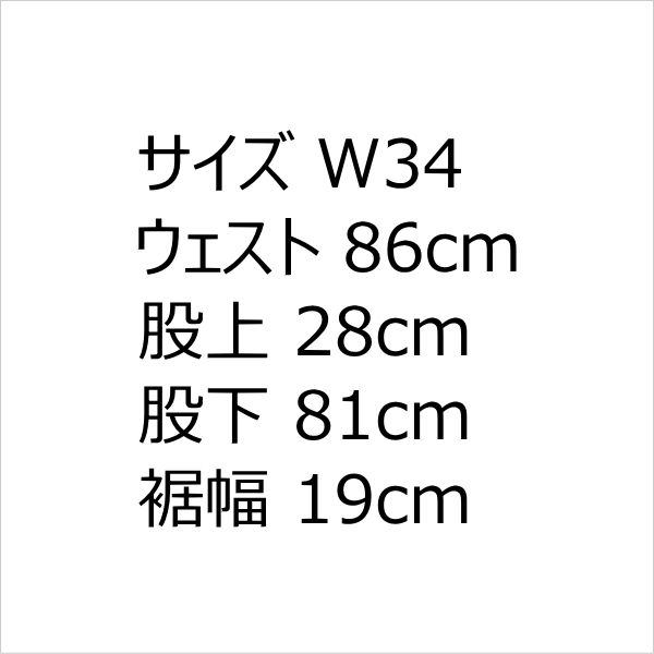 ・サイズW34/ウェスト86cm/股上28cm/ヒップ103cm/股下81cm/裾幅19cm