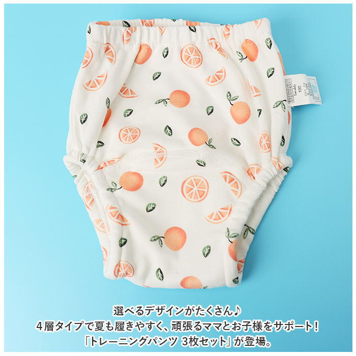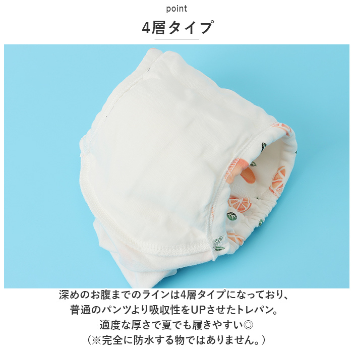 | 商品説明 | ・・選べるデザインがたくさん♪4層タイプで夏も履きやすく、頑張るママとお子様をサポート!「トレーニングパンツ 3枚セット」が登場。 ・【4層タイプ】 ・深めのお腹までのラインは4層タイプになっており、普通のパンツより吸収性をUPさせたトレパン。適度な厚さで夏でも履きやすい◎(※完全に防水する物ではありません。) ・【天然素材】 ・コットン使用の生地でお肌に優しい仕様。デリケートな部分に触れるものだから優しい天然素材で柔らかタッチなのも嬉しいポイント。 ・【通気性◎】 ・暑い日でもムレにくい、通気性にも配慮したトレパン。お腹からお尻あたりまで4層タイプ、他は通気性を損なわないよう厚さを調節。 ・【ゴム仕様】 ・ウエスト部分と股ぐり部分はゴム仕様で、漏れにくい。トレパンならではの安心仕様。 ・【嬉しい3枚セット】 ・失敗が続いても安心の3枚セット。洗濯を急がなくてもOK、頑張るママとお子様をサポート! ・【豊富なデザイン】 ・デザインのバリエーションが豊富◎今日はどのパンツを履く?とお子様のモチベーションもアップ♪楽しくトイトレ! |