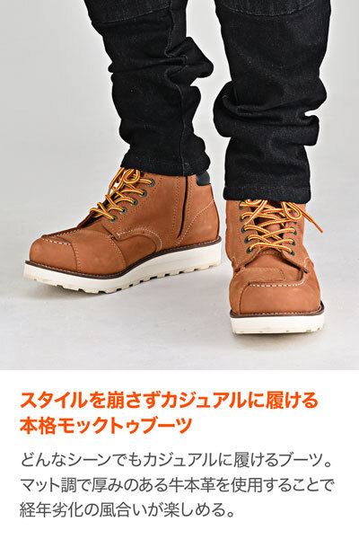 | ●スタイルを崩さずカジュアルに履ける本格モックトゥブーツ。マット調で厚みのある牛本革を使用しているので、経年変化の風合いを楽しむことができます。くるぶしパッド・シフトパッドを内蔵し、安全性と機能性を両立。足首にシャーリングを配置したことで、ブーツなのにシューズのような歩きやすさを実現しました。ソールにはEVA+ラバーのフラットソールを採用し、滑りにくく、車種を問わず扱いやすい設計に。 ■仕様 ・カラー:ブラウン ・サイズ:24.0cm(レディースサイズ) ・素材:アッパー部 - 牛革 内装 - ポリエステル ソール部 - 合成ラバー ※防水性能はありません。 ※サイズ・色交換は承れません。ご注文前に必ずサイズ・色をご確認下さい。 ※取り寄せ品 |