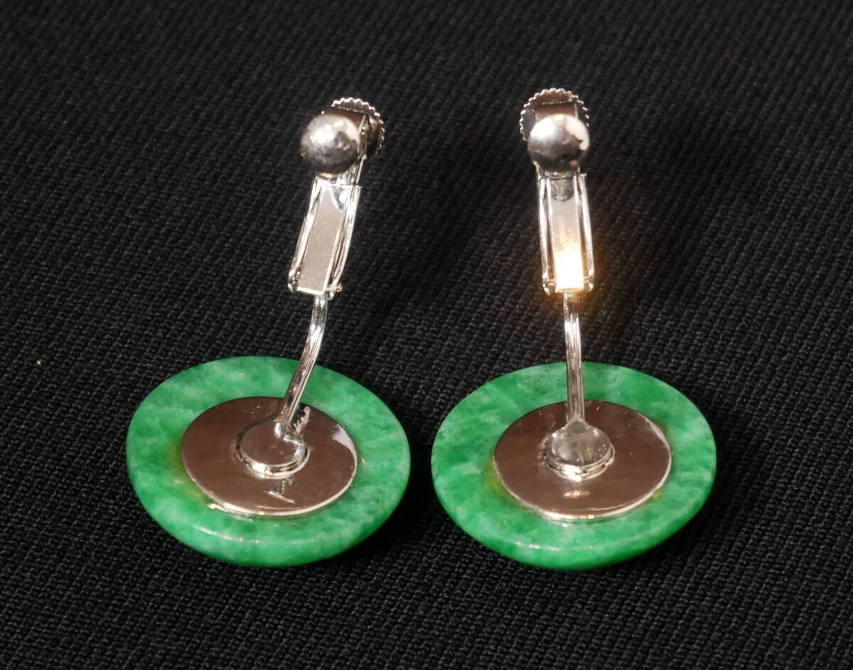 | ▲(R709-H199) 翡翠 ヒスイ カラーストーン 緑 シルバーカラー イミテーション イヤリング ケース付き | ||
