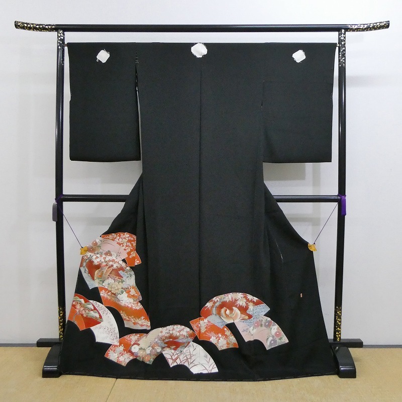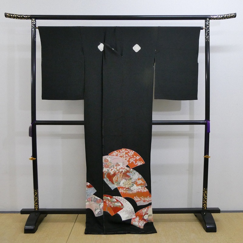 ◆黒留袖/作家物/扇面に花柄等/リメイク・材料等に/新品/未仕立て/正絹/絵羽/(梱包サイズ:80)◆* コメント・全体的に薄汚れ・薄い色ヤケがあり、一部汚れ・色ヤケがれがあります。 ・新品ですが、経年保存されていたお品ですので、ご理解のある方のご入札をお願い致します。 ・シミ、ヤケ等の難がある為、リメイク・材料・素材用としてご入札ください。 ・ ・ * 品質・サイズ -- 着物サイズ目安 -- ・身丈・約169cm、袖丈・約59cm、裄・約65cm ・五つ紋:石持ち ・ ・※一部商品のみのお取引はお断り致しております。入札前・落札後に一部の商品のみのお取引交渉や発送方法(メール便等利用)の交渉はご遠慮下さい。サイズ・発送詳細を必ずご確認のうえ、ご理解・ご納得のうえでのご入札をお願い致します。 ・梱包サイズ:80サイズ(発送詳細必読) * 程度 当社基準ランク・・・【6】