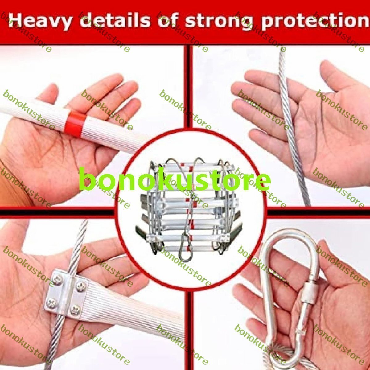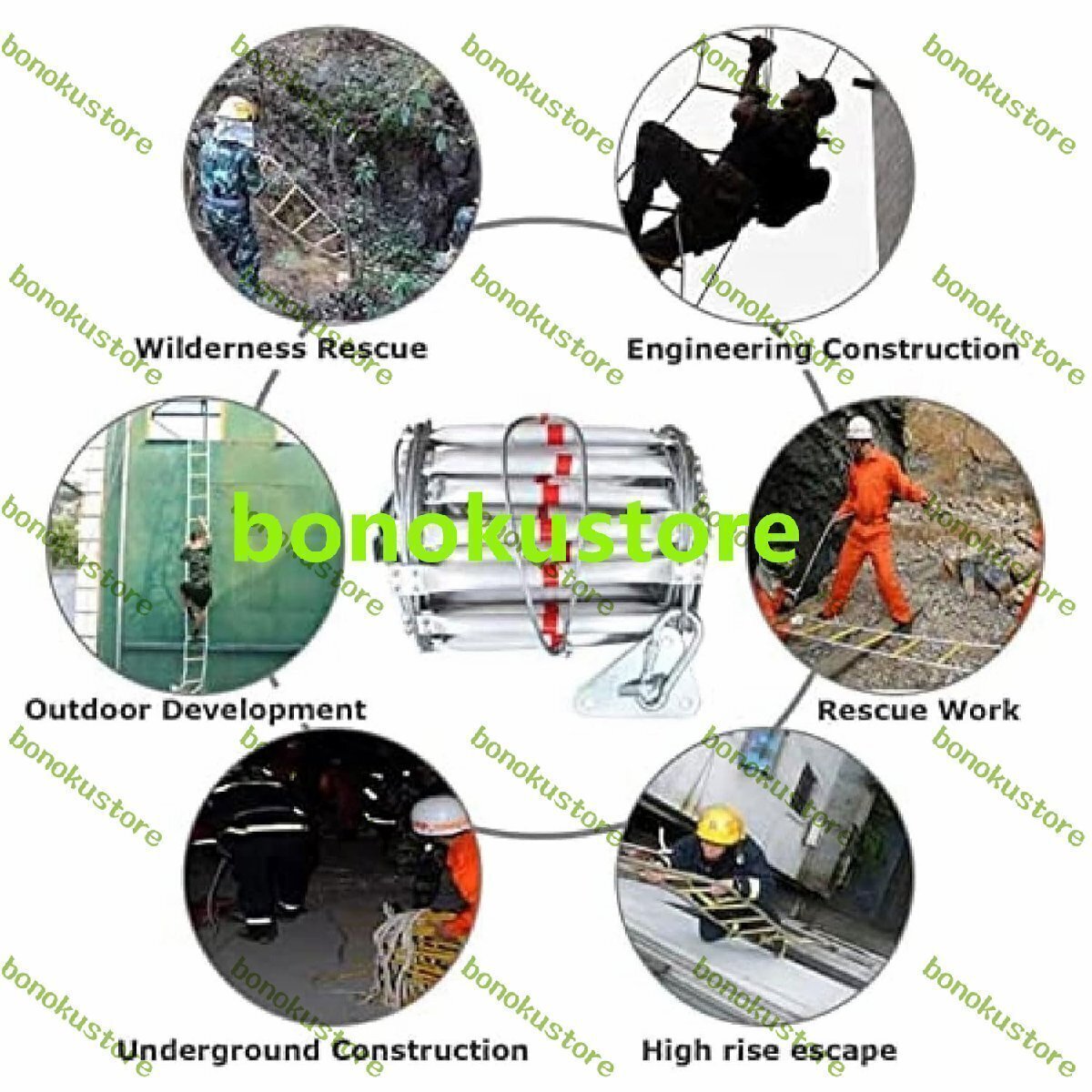 10M/32.8FT 折りたたみソフトはしご、安全バックルと三角プレート付きアルミニウム合金緊急消火はしご、耐荷重500kg/1100ポンド、コンパクトな登山はしご