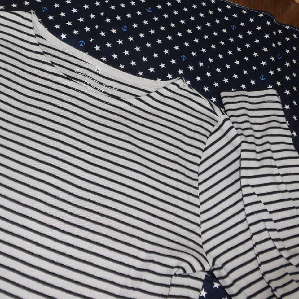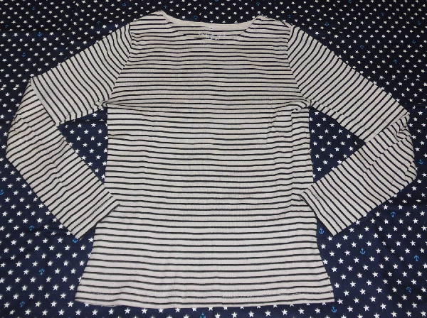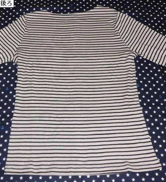 | 数回使用しましたが、比較的キレイです。 ☆ 品番:512-11-7331 ☆ サイズはM ☆ ベージュと黒のボーダー ☆ 実寸は、身丈57センチ、肩幅32センチ、袖丈55センチ、 脇下の幅39センチ、裾幅40センチ ☆ 綿100% ☆ 丸首 ハニーズ Honeys | ||