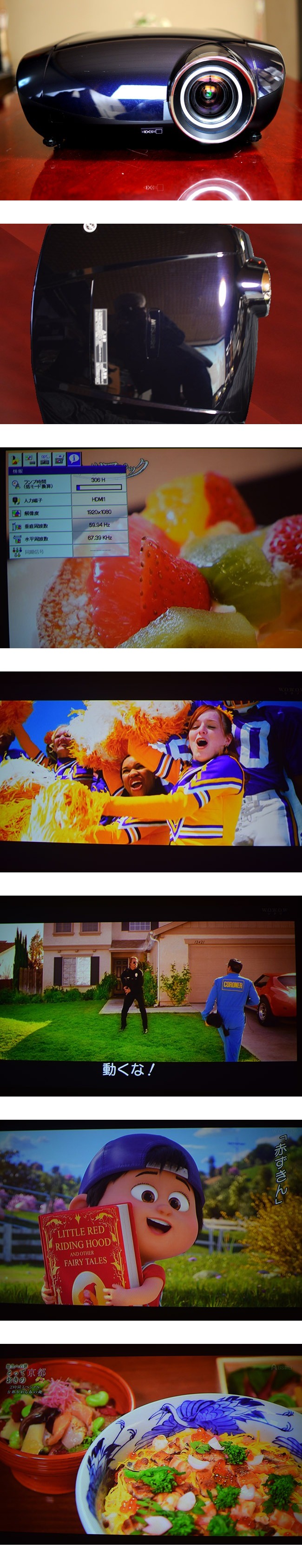 色彩鮮やかに濃密な映像です。コントラストを飛躍的に向上させる新開発「ダイアモンド・ブラック・アイリス」搭載効果で、黒が一段と引き締まり、コントラストが効いた立体感、陰影の微妙な階調表現、艶と潤いのある人肌表現、鮮やかで濃密な色再現性はAV専門誌各誌で高評価を得たフルHDモデルならではの実力で、背景の細部にまで渡る高い解像感、素材の質感をも感じさせる繊細な描写力も秀逸です。実写映像は添付写真をご覧ください(120インチホワイトマットスクリーンに当出品機で実際に投射した映像です)。