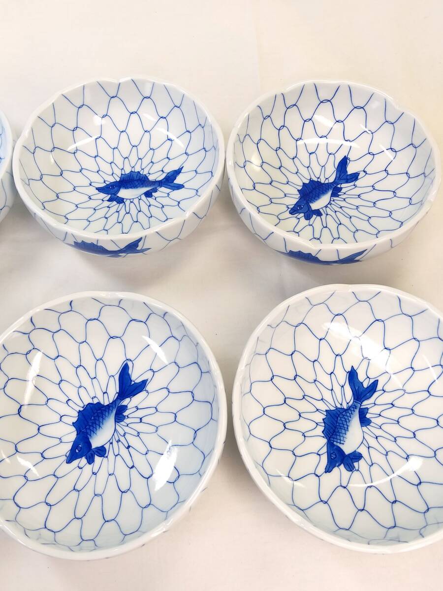 『網目魚紋』6客/組セットです。6客/組揃っています。作者銘あります。日本製です。新品です。