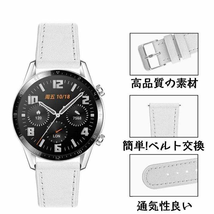 Huawei Watch GT 対応 バンド Huawei Watch GT2 バンド honor magicバンド本革 Huawei Watch GT/GT2 ベルト 【ホワイト/46MM】