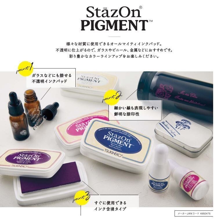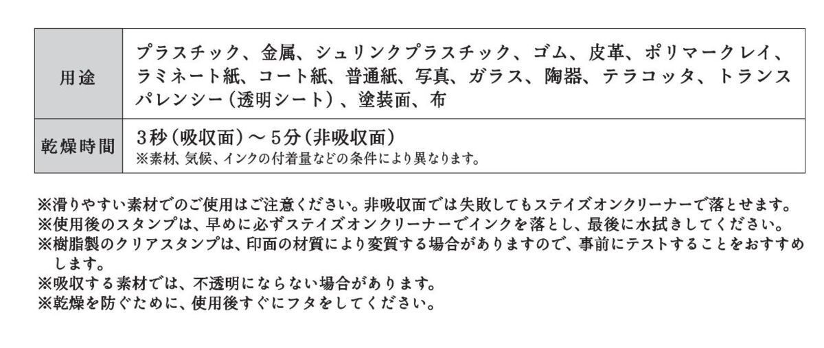 様々な材質に使用可能なオールマイティなインクパッドです。不透明な仕上がるのでガラスやビニール、金属等にもおすすめです。いろんなものをデコレーションしてお楽しみください♪※滑りやすい素材でのご使用はご注意ください。※使用後のスタンプは、早めに必ずステイズオンクリーナー(※別売り)でインクを落とし、最後に水拭きしてください。※吸収する素材では不透明にならない場合がございます。※乾燥を防ぐ為に、ご使用後はすぐにフタをしてください。サイズ:約W9.7×D5.7×H2.3cm 盤面 約7.6×3.5cm※実店舗や他の販売サイトと在庫を共有しているため、売り違いが発生する可能性がございます。その際には、何卒ご理解いただけますようお願い申し上げます。お客様にはご迷惑をおかけしないよう、努めてまいります。