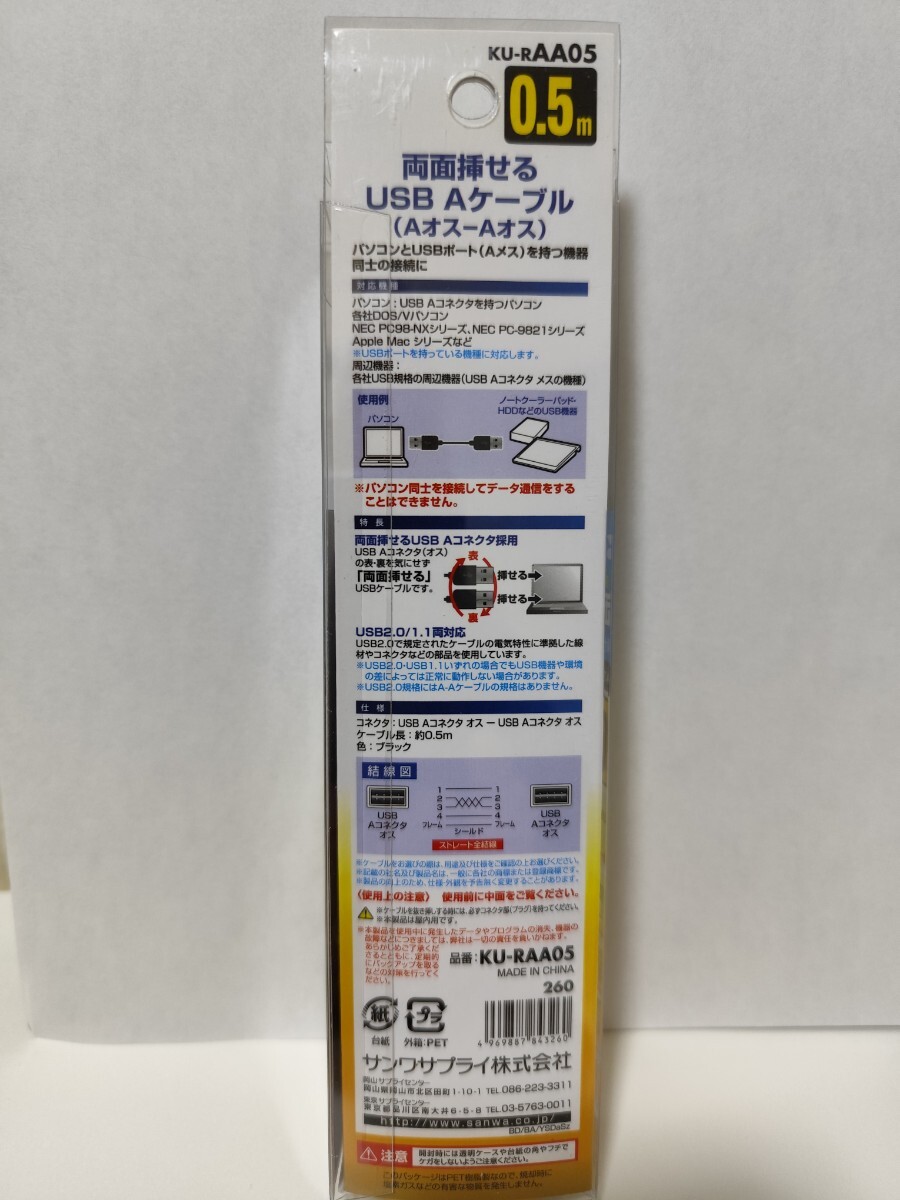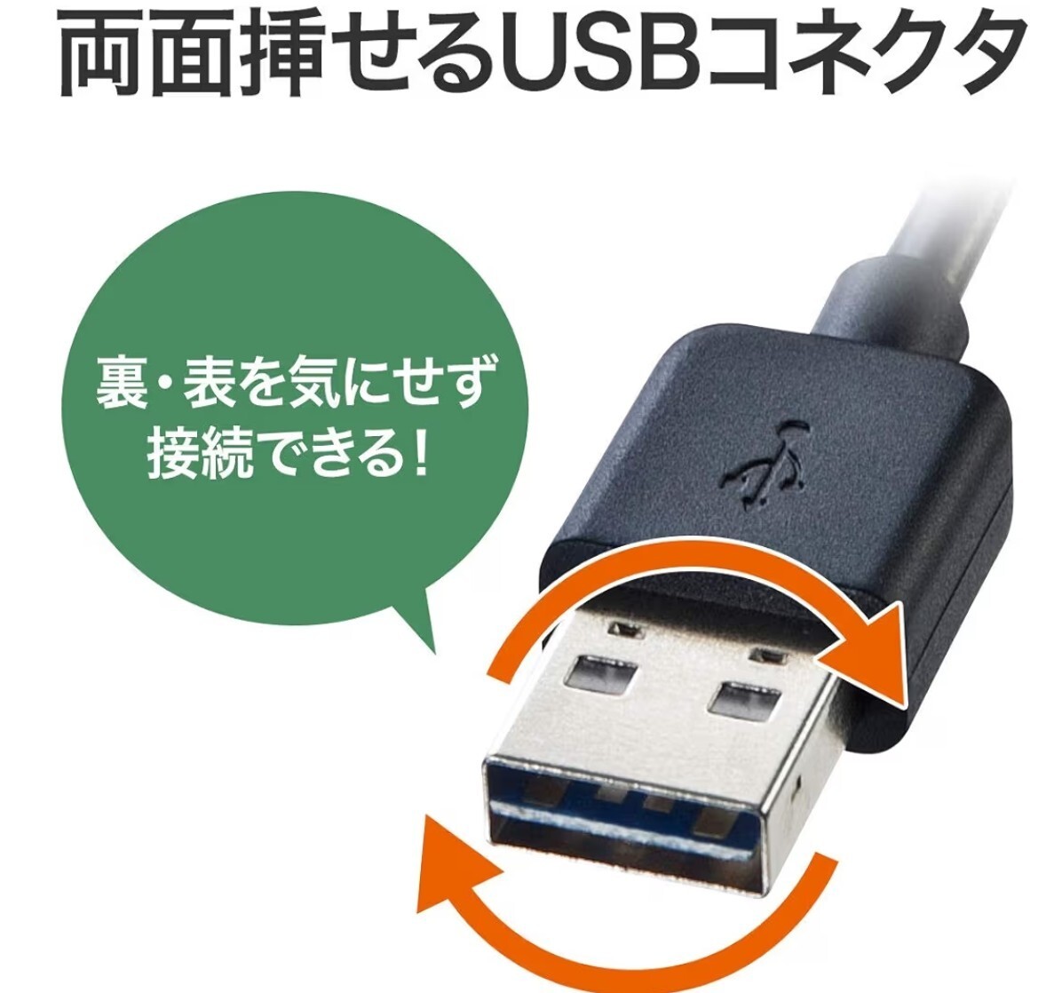 サンワサプライ SANWA USB USB3 USB延長ケーブル両面挿せるUSBケーブル(A-Aタイプ) 0.5m ブラック KU-RAA05