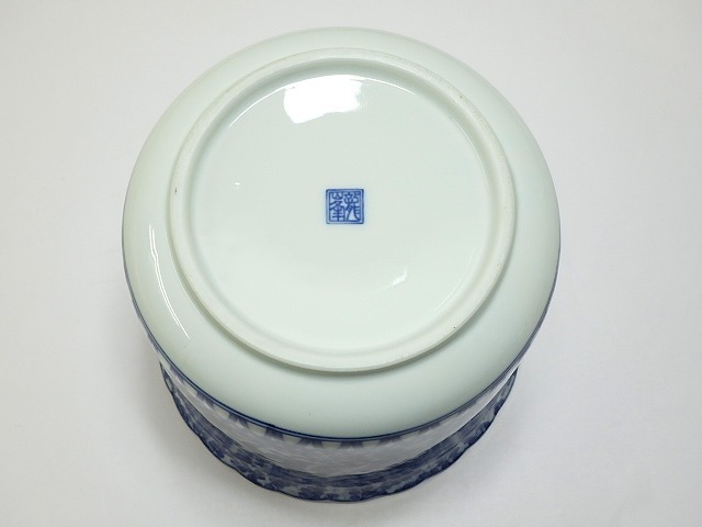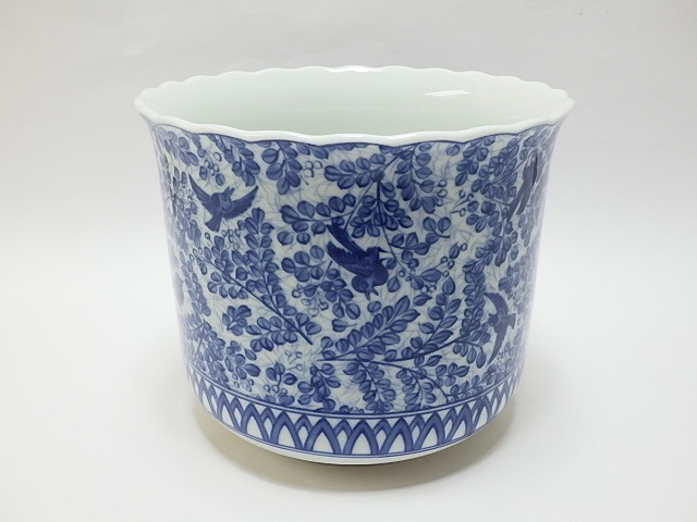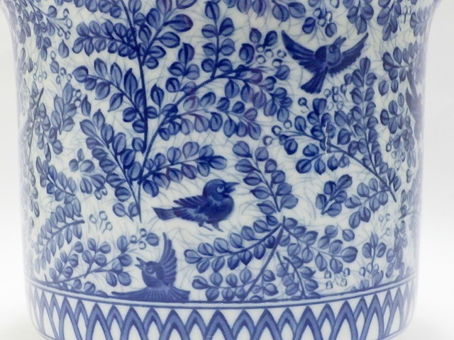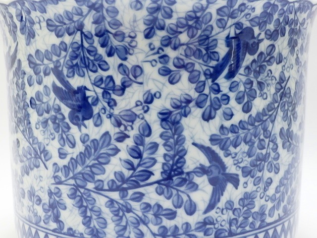 | ★ 龍峰作 染付 花鳥図 千鳥いっぱい 鉢カバー ① 投入 花器 ワインクーラーにも! ★ H912 porcelain cachepot | ||||||||||||||||||||