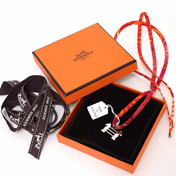 ◆HERMES ソーエルメス シルクブレスレット チョーカー チャーム 2017年 パリ本店限定 日本未発売 オレンジ系。 ◆中古Sランク。一度、消費者の手に渡った商品です。金具に肉眼では見えないくらいの小傷と、シルクに少しクセ・ヨレがございます。 ◆製造過程や素材の性質上、保管時の押し跡など、もともとのシワ・小さな傷等が見られる場合がございますが、天然素材の風合いとしてご理解くださいますようお願い申し上げます。 ◆障害飛越競技の国際馬術大会 SAUT HERMES AU GRAND PALAIS ソー・エルメス・グランパレ・パリ。このシルクブレスレットは、2017年にシャンゼリゼ通りに建つグランパレを貸し切って開催されたこの会場とパリ本店でしか手に入らない限定アイテムです。馬が飛び越える「障害物(馬モチーフ)」をデザインしています。辛いことでも飛び越えられる、という意味が含まれたラッキーアイテムとして2017年のデザインに採用されたそうです。リボンにも2017と表記されています。 ◆お使いのモニター環境により実際のお色と違って見える場合がございます。あらかじめご了承ください。 ◆代引のご注文の場合、ご注文日より3日以上先の日時指定はお受けできません。ご注文頂いた場合は一度キャンセルさせて頂きます。 ◆ご不明点ございましたらご遠慮なくお問い合わせ下さい。 |
