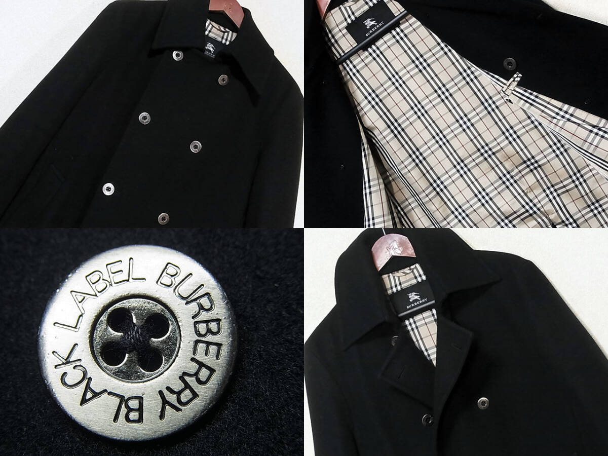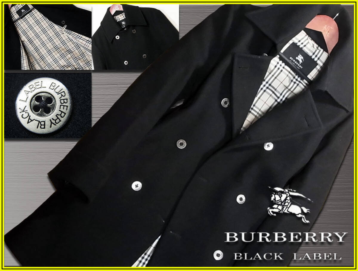 希少L!最高級の傑作!ウールアンゴラ メタルボタン Pコート 総裏チェック 日本製▼バーバリーブラックレーベル BURBERRY BLACK LABEL