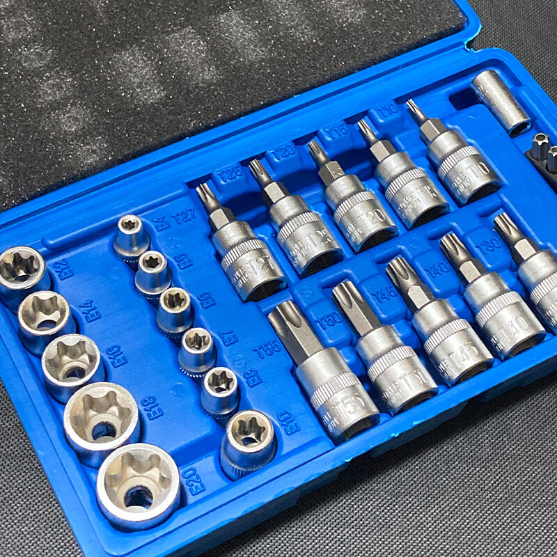 E型 T型 ソケット トルクス 29 個 pcs セット スタービット 星型 花型 ドライバー 雄 雌 ビット メンテナンス 整備 工具 修理 特殊工具 | |||