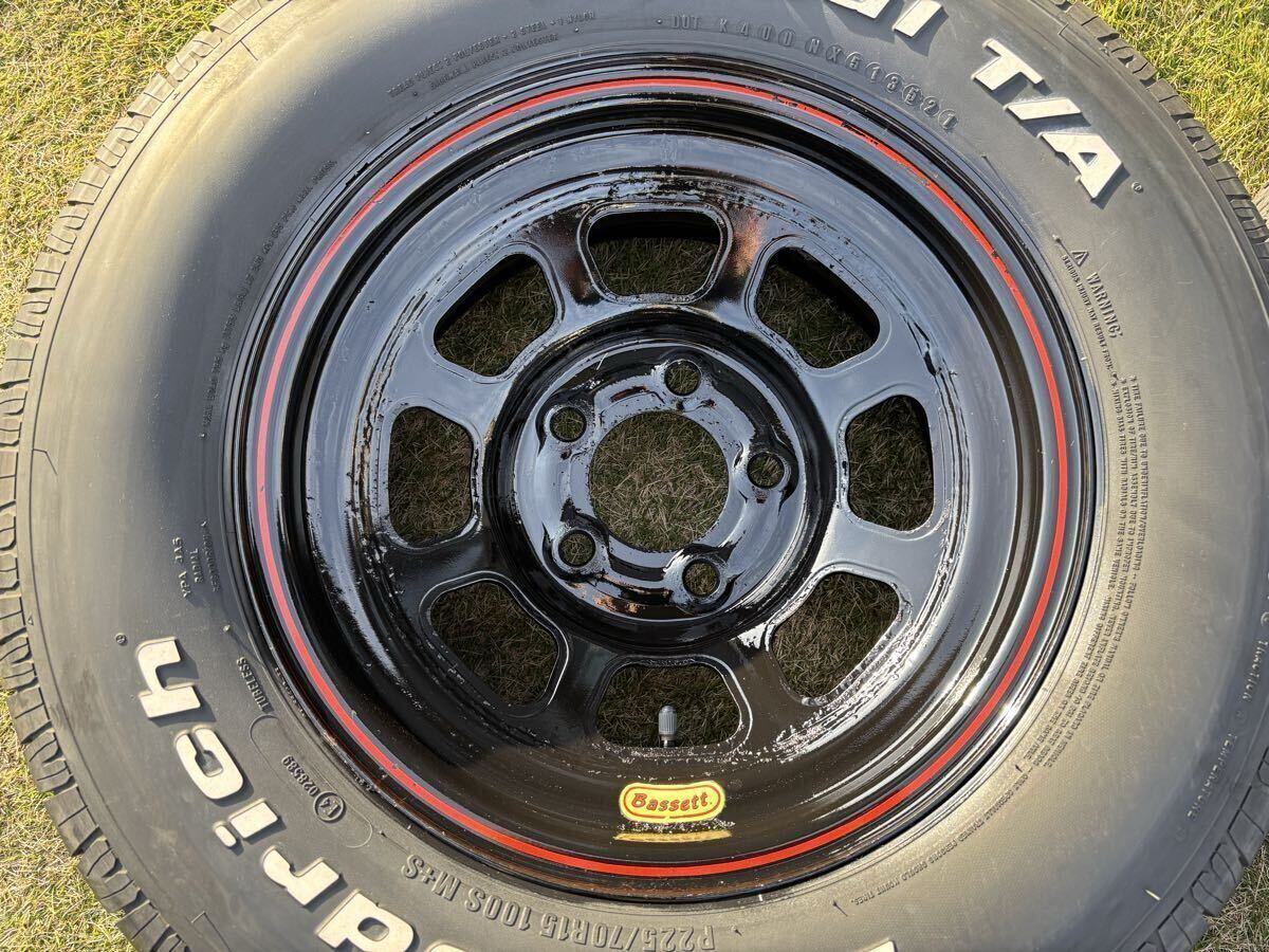 | ★直接手渡し大歓迎 超希少 バセット ホイール 15×7J 5穴 PCD127 4本SET ブラック再塗装済み & 2021年製 バリ山 BF Goodrich RADIAL T/A 225/70R15 ホワイトレタータイヤ 4本SET 1996年式 シボレーアストロにて使用 洗浄済み・即使用可能の出品となります。 【ホイール】 ■メーカー:【Bassett Racing Wheels】★バセットレーシングホイール ■生産国:【MADE IN USA】★アメリカ製 ■モデル:【Dホール】 ■サイズ:【15インチ】 ■リム幅:【表記なし】★4本ともサイズの刻印がタイヤで隠れており見えませんが、リム端面からリム端面まで約21.5cmのため、今までの経験上おそらく7J×4本だと思います。 ■オフセット:【約-5mm】★多少の誤差はご容赦下さいませ。 ■穴数:【5穴】 ■P.C.D:【127】 ■ハブ径:【約83mm】★多少の誤差はご容赦下さいませ。 ■数量:【4本】 ■カラー:【ブラック×レッドライン×イエロー(ステッカー部分)】 ★レッドラインとロゴ入りステッカー部分を残し、おもて面はツヤありブラックにて再塗装後にクリアーを吹いてあり、裏面はツアありブラックのみ再塗装済みです(もちろん再塗装後は使用しておりません)。 ★おもて面にはクリアーも吹いてありますので、使用過程でレッドラインが消えてしまう事もまずありませんし、定期的に簡単なメンテナンスのみでキレイな状態を維持しやすいと思います。 ■使用していた車種:【1996年式 シボレーアストロ】 ■【取り付け可能車種】 ・1985~2002年 シボレー アストロ (5穴) ・1985~2002年 GMC サファリ (5穴) ・1992~1998年 シボレー C1500 ・1992~1999年 シボレー タホ (2WD・5穴) ・1992~1999年 シボレー サバーバン (2WD・5穴) ・1992~1999年 GMC ユーコン (2WD・5穴) ★上記車種以外にも シェビーバン、C-10、キャデラック、カプリス、エクスプレスなどの5穴P.C.D127のお車でハブ系が83mm以下の車種であれば、おそらく取り付け出来るかと思います。 ■状態:【USED】★洗浄後にブラック&クリアー再塗装済み・即使用可能 ★ホイールは裏面も含めて一通り洗剤にて洗浄後に、ツヤありブラック&クリアーにて再塗装済みとなります。 ★あくまで中古品となりますので、多少の使用感はございますので神経質な方の入札はご遠慮下さいませ (画像にて状態をよくご確認下さいませ)。 【タイヤ】 ■メーカー:【BF Goodrich】 ■モデル:【RADIAL T/A】 ■サイズ:【P225/70R15 100S M+S】×4本 ■製造年月:【2021年35週】×3本 &【2021年29週】×1本 ■残り溝:【4本ともバリ山】★使用距離もほとんど走っておりません。 【1本目】 外側 7mm 中央 7mm 内側 6.5mm 【2本目】 外側 7mm 中央 7mm 内側 7mm 【3本目】 外側 7mm 中央 7mm 内側 7.5mm 【4本目】 外側 6.5mm 中央 7mm 内側 6.5mm ■数量:【4本】 ■状態:【USED】★洗浄済み・即使用可能 (ホワイトレター部分も専用クリーナーで磨いてありますので、白くてキレイです) ★4本とも残り溝もバリ山で製造年月も2021年製ですので、交換せずにこのまま使用可能だと思いますので、とてもお買い得です(現在新品で同じタイヤを購入しますと、4本で10万円ほど掛かってしまいます)。 ★タイヤも裏面も含めて全部分をひと通り洗剤にて洗浄しておりますので、お手元に届き次第にすぐに気持ち良く使用可能です。 ★あくまで中古品となりますので、多少の使用感はございますので神経質な方の入札はご遠慮下さいませ (画像にて状態をよくご確認下さいませ)。 ★落札前に現物を見に来て頂いた場合に限り、値引きも可能です。 ★毎週土曜日〜月曜日の間に落札頂きますと、のゴールドクーポンが使用出来るため4000円OFFにて落札出来て非常にお買い得ですので、その曜日内の落札をオススメ致します。 ★クロネコヤマト宅急便 着払い 又は 直接手渡し(東京都 東大和市)にて対応致します。 ★直接手渡し(東京都 東大和市)も大歓迎ですので、落札後にその旨をメッセージにてお伝え頂けますと幸いです。 ★質問欄からメッセージを頂ければ、概算にはなりますが各都道府県までの送料をお調べ致しますので、お気軽にどうぞ。 ★バセットホイールは日本で新品を販売している代理店がなく、アメリカから輸入した場合には送料だけでも10万円以上掛かってしまいますので、国内での購入をオススメします。 ★バセットホイールはスチール製ですので、1ナンバーのお車でも問題なく車検を通せますのでご安心下さいませ。 ★通常使用以外でも車検対策用の一時的な履き替え用としても大いに活用出来る見栄えも良いホイールとなります。 ★他にもアメ車関連のレアなパーツや、アメ車に適合する各種ホイール(純正 & 社外)も多数出品しておりますので、出品者のその他のオークションから是非ご覧頂けますと幸いです。 ★基本的に支払い完了日の当日、又は遅くても翌日までには必ず発送手続きを致しますので、お急ぎの方は是非どうぞ。 ★ひと月に一度アメリカから新商品のパーツが届きますので、日本で出回っていない商品も多数出品していきますので宜しくお願い致します。 ★また、新商品を毎日出品していきますので、定期的