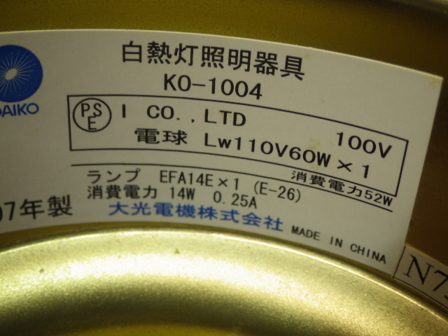 ほかにも出品しておりますので見て行ってください。 ←ここをクリック ①KO-1004 白熱灯照明器具 大光電機株式会社 中古の品なのでノークレーム、ノーリタンでお願いします。 落札後はNC、NRにてお願いします。 発送 着払いのみ 詳細な色や型式等詳細は解りませんので、写真でご判断ください。 傷等は写真にてご確認ください。 詳細や付属品等は写真にてご確認ください。 注意!!写真に写っている物が全てで、それ以外は一切付属いたしません。 | ||||