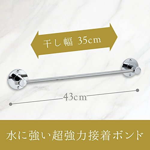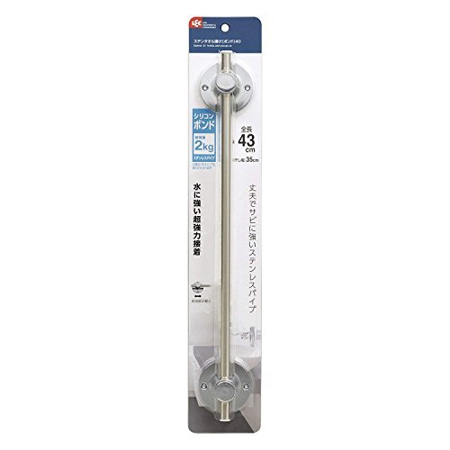 ・シルバー 43cm B00043・・Size:43cm・サイズ:43×5×6cmす(干し幅35cm)・耐荷重:2kg・取付方法:シリコンボンド・木ネジ・サビにくく丈夫な18-8ステンレスを使用している。・水に強い超強力接着剤を採用、しっかりと固定する。●サビに強く、丈夫な18-8ステンレスを採用。●水に強い超強力接着剤を採用。しっかりと固定します。 ●支持部は可動式でスライドできます。 ●フェイスタオルが広げて干せるサイズです。 ●全長43cm (干し幅35cm) ●耐荷重2kg ●付属の木ネジでも取り付けられます。| お取引きについて【必ずご確認下さい】 | ||||||||||||||||||||