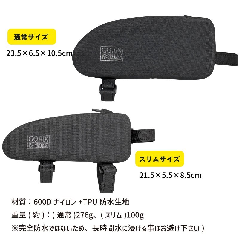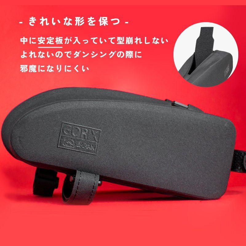 水や汚れに強い素材でアクティブなサイクリングに最適なトップチューブバッグ。