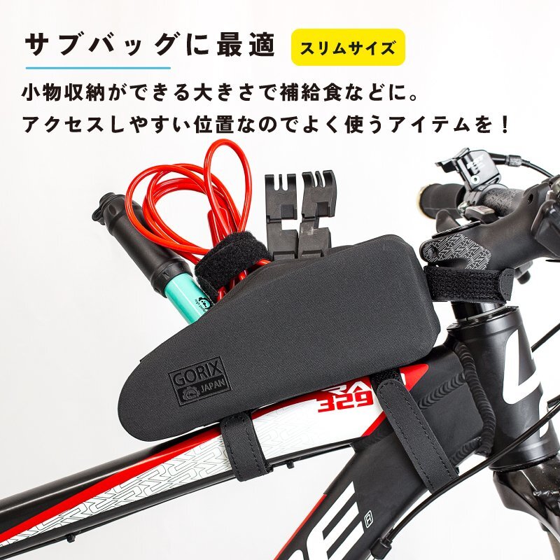 ロードバイク、クロスバイク、MTB等に最適なフレームバッグです。