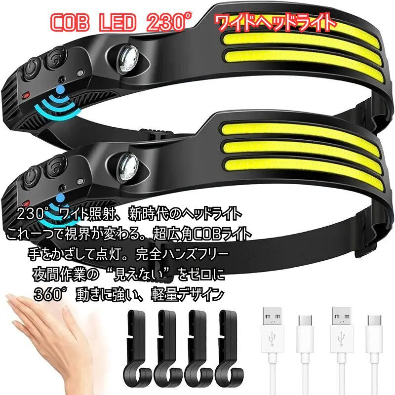 本商品は、230°ワイド照射COBライトと高輝度XPE LEDを搭載した、最新型のLEDヘッドライトです。 夜間作業・キャンプ・釣り・ランニング・車の修理など、あらゆるアウトドア/インドアシーンで実力を発揮します。 ジェスチャーセンサー搭載のため、手をかざすだけで電源ON/OFFが可能。両手が塞がっていても操作できるため、作業中のストレスを大幅に軽減します。 また、折りたためる軽量バンドとUSB Type-C充電式バッテリーを採用し、携帯性・利便性・耐久性を兼ね備えた万能モデルです。 ■ 特徴● 超広角230°ワイドCOBビーム 頭の動きに依存せず、視界全体を均一に照射。最大450ルーメンの超高輝度。 ● ジェスチャーセンサー搭載 5cm以内で手を振るだけでON/OFF操作が可能。作業・整備に最適。 ● 5つの照明モード COB高輝度/COB低輝度/XPE高輝度/XPE低輝度/点滅SOS。 ● 軽量3.5oz・柔軟シリコンバンド 長時間装着でも負担にならない、軽量で快適なフィット感。 ● USB Type-C高速充電(1200mAh) モバイルバッテリー・PC・車載USBなど、幅広い電源で充電可能。 ● IPX4防水設計 雨天や雪のアウトドア環境でも使用可能。 ■ 仕様(Markdown形式)