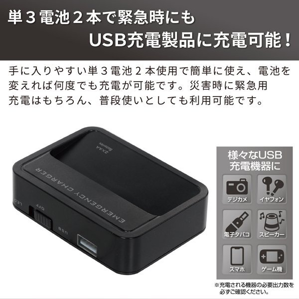 緊急時にUSB機器の充電もできる!