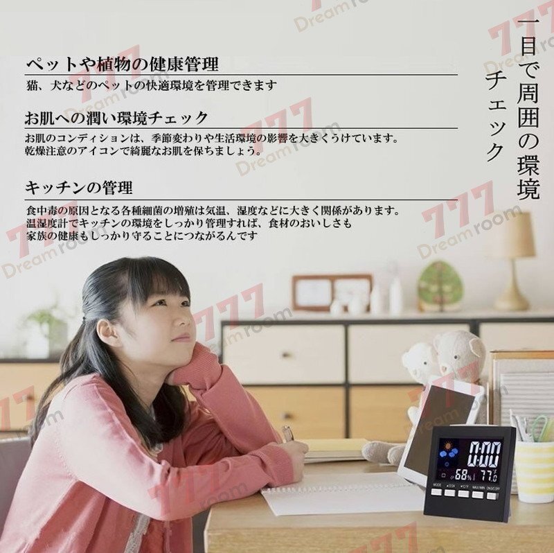 音声感知する! 高性能 カラー液晶 デジタル湿度計 温度計室内 目覚まし時計 卓上
