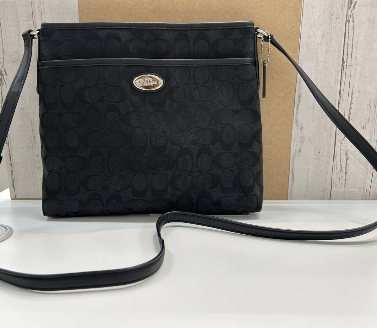 | 〇定番柄をシックに持ち歩こう COACH ショルダーバッグ F36378 コーチ ブラック系 シグネチャー 黒 バック レディース メンズ【6895SS】K18 | ||