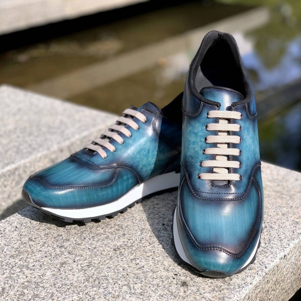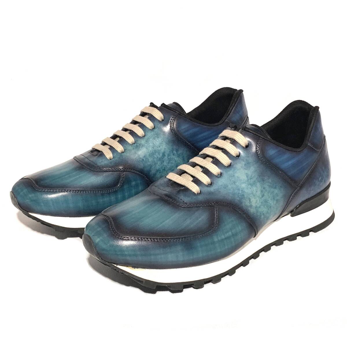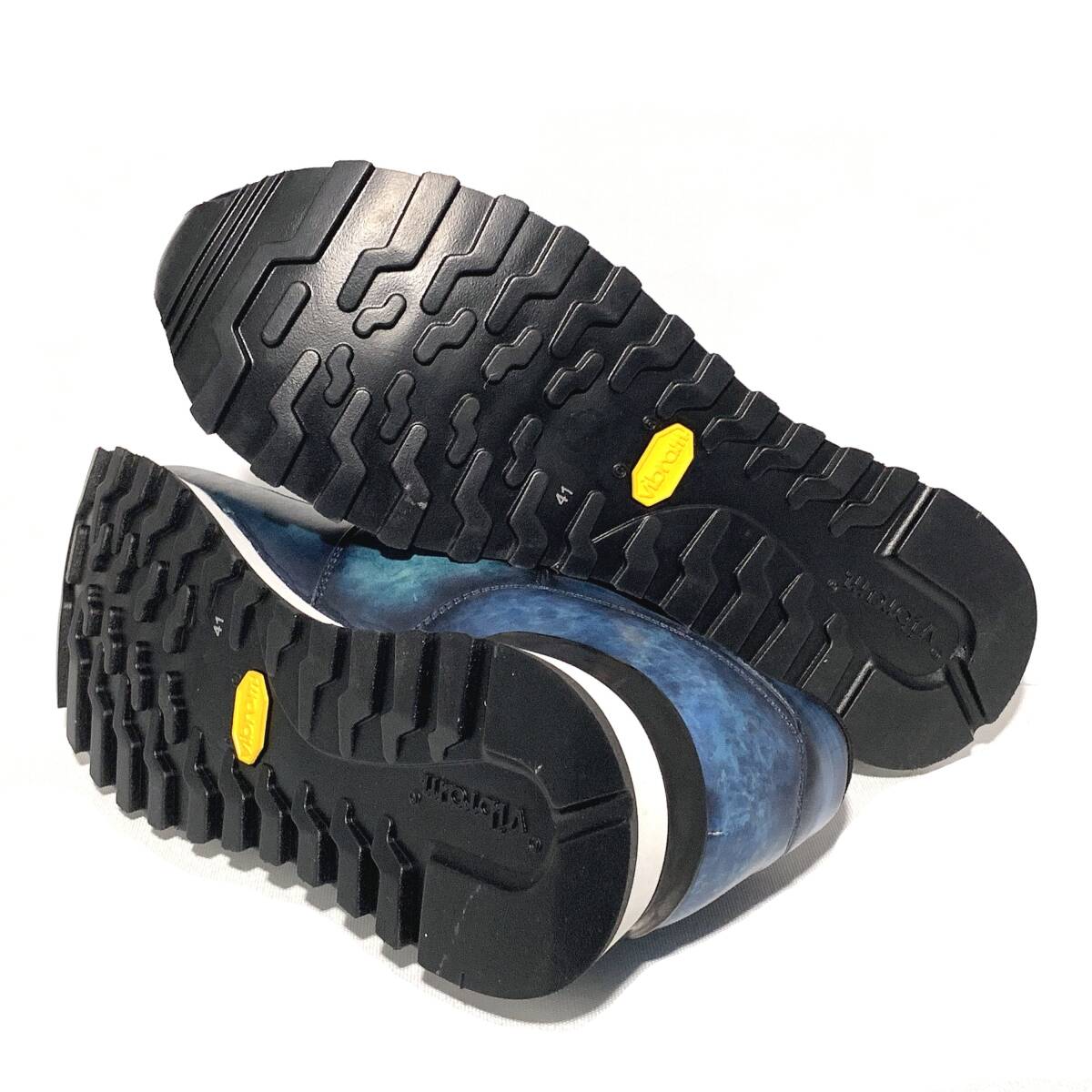 エルエクレのパティーヌスニーカーになります。 職人が一つ一つパティーヌを施す事がベースのスペイン製のブランドになりまして、美しく華やかな色合いが目を引く非常のオシャレなブランドです。近年ベルルッティを筆頭にパティーヌの美しさが注目され、現在では非常に高価で希少な物という位置付けになっています。まだブランド自体が始まったばかりで全く出回っていないブランドですので、他の方と差を付けたい方には是非お勧めです。 こちらはラグジュアリー×スポーティのミックスでして、高級感のある上部の見た目のイメージとは違い、走れる軽快さと履き心地が大きな特徴です。内側のクッション性が素晴らしく、長時間履いても疲れません。中でも特にこだわっている部分としまして、従来のパティーヌは1種類を全体に施すのですが、こちらはアッパーの切替部分全てにそれぞれ違ったパティーヌを施しています。見る角度によってそれぞれの表情を楽しんでいただける、ファーストモデルですが始まりでありつつ、完成形の様な一足です。 【他にもエル エクレの商品を多数出品しておりますので、よろしければご覧下さいませ。】 |