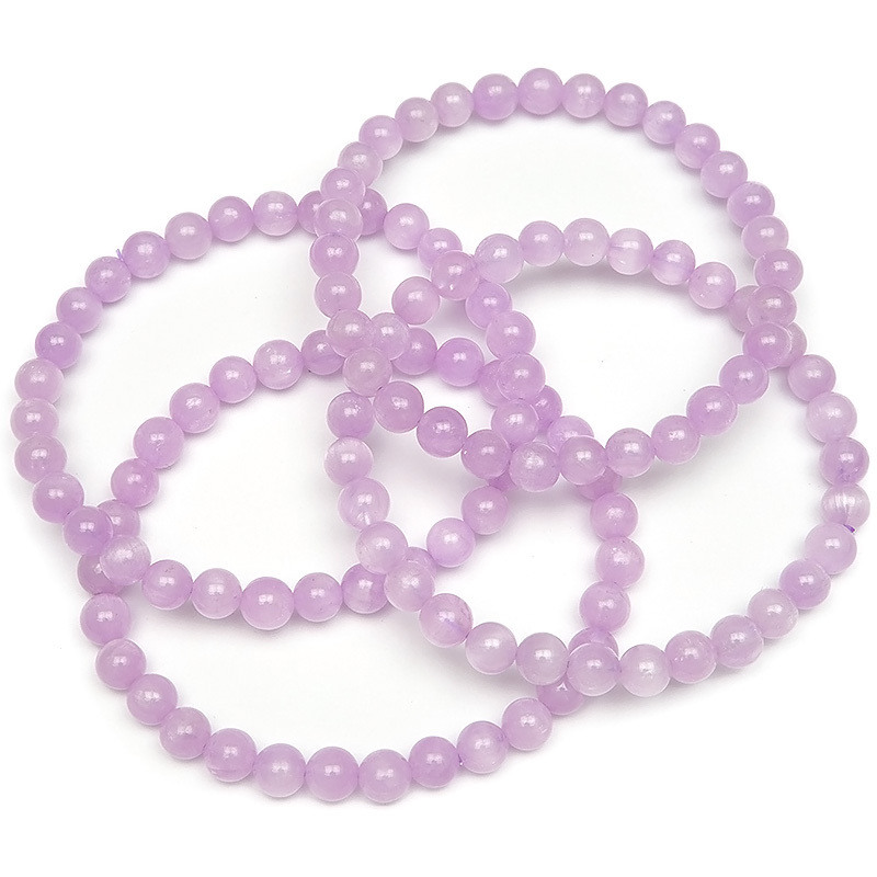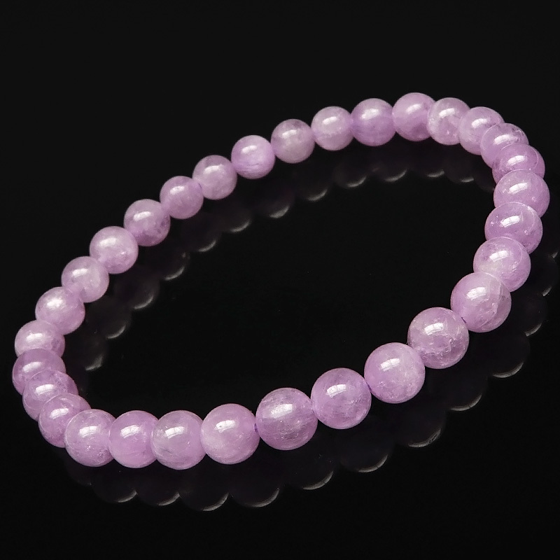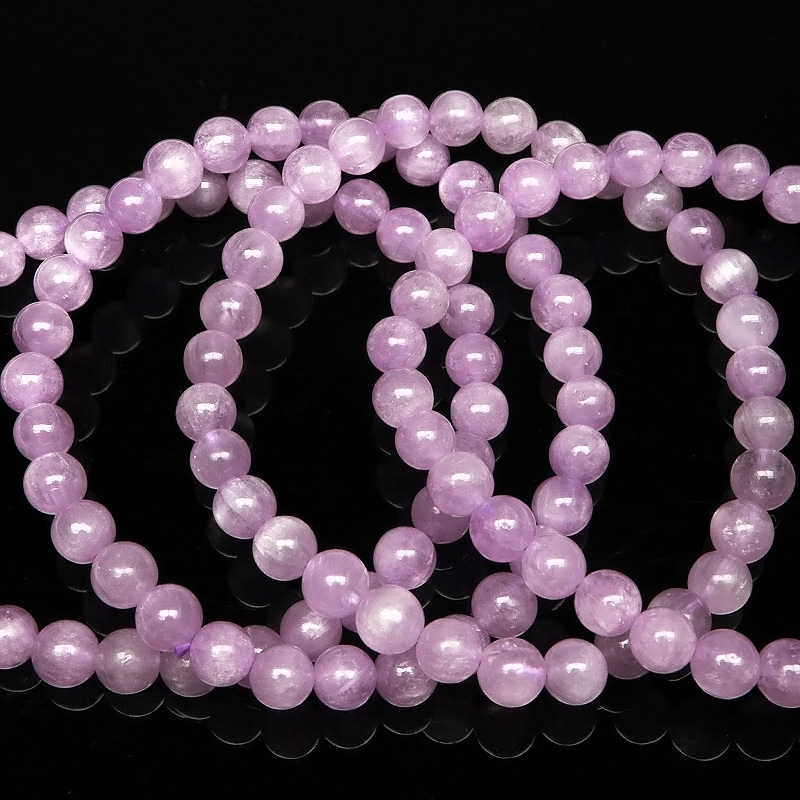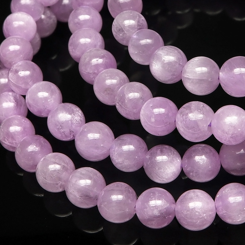 可愛らしい発色が魅力的なナイジェリア産クンツァイトの丸玉ブレスです。