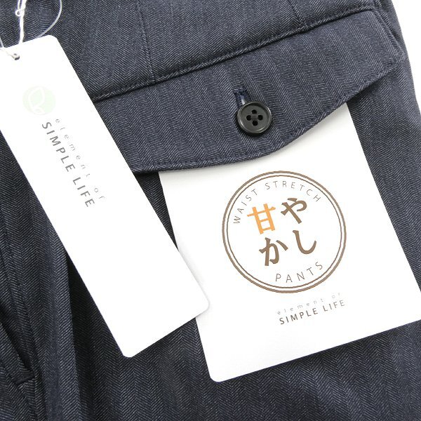 ウエスト88(XLサイズ以上) ※写真は別サイズを使用している場合がございます※ ※商品に記載されたサイズ・寸法です※ ウエスト90cm(内回り1周) 股上28.5cm 股下80cm 裾幅19.8cm 腿幅30cm(股下10cm部分) ポリエステル49% レーヨン27% ナイロン20% ポリウレタン4% ネイビー |