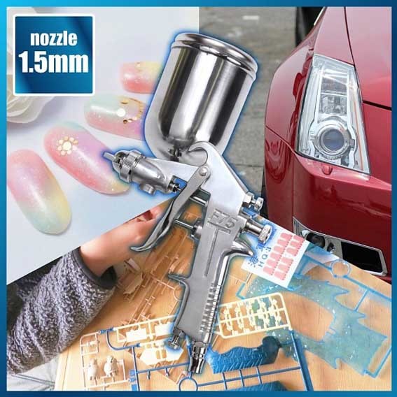 ◎本格プロ仕様 重力式エアースプレーガン※カップ容量/400ml,ノズル1.5mm・送料無料! ◎DIY使用やプロ使用にも最適な低圧での安定感、重力式エアースプレーガンです! |