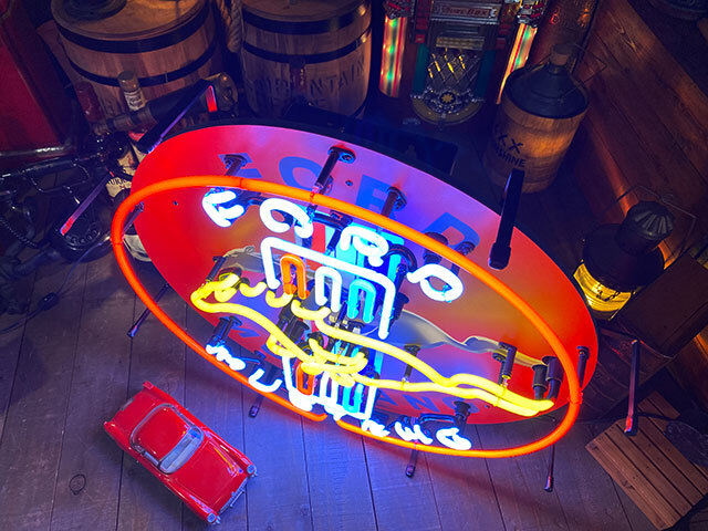 フォードディーラーのドアをくぐると、古びたレンガの壁にひときわ輝くボウタイエンブレムが・・・・そんなシーンを連想させてくれるマスタングのオフィシャルネオンサインです。| 出价者 | 信用 | 价格 | 时间 |
