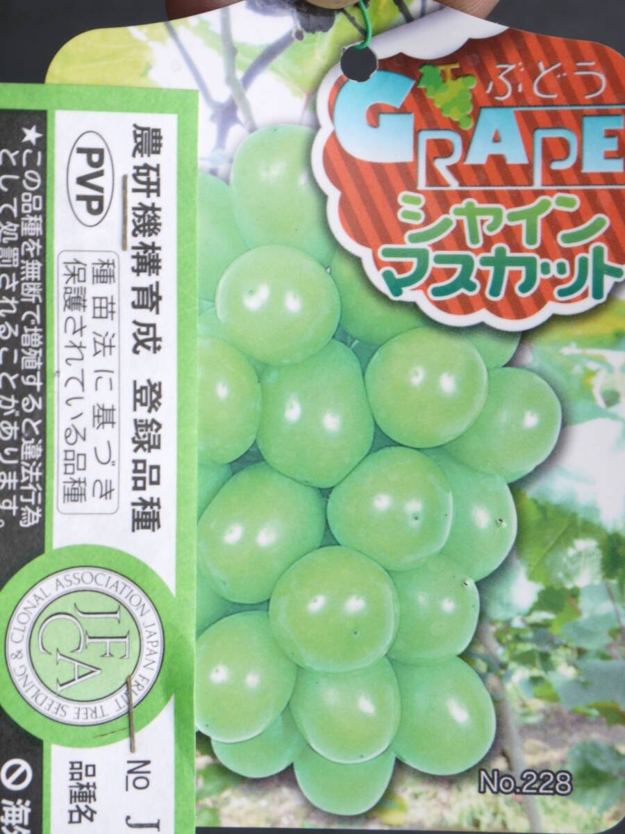 ブドウ苗シャインマスカット自根株(挿し木)です 果皮は黄緑色で糖度17~20度と高く、肉質硬く崩壊性(噛み切りやすい)で マスカット香があり皮ごと食べられ食味最高 果粒12~14g位、摘粒40~50粒位にすると500~600gの良質な房になります ■PVP 種苗法登録品種■ 11月12日撮影 写真と同等のお品をお届け致します サイズは15cmポット植え、ポット込み高さ約90cmで先端をカットしております ■発送はヤマト運輸さん、佐川急便さんよりお選びください (ご落札後、【取引をはじめる】ボタンを押して 初回お手続き時に発送方法をご選択ください) ※1)佐川急便さんの場合、離島宛は別途料金がかかるとのことです お手数ですがご入札前に質問欄にてお問合せください ※2)沖縄県宛につきましても同様に質問欄にてお問い合わせください■ クロネコヤマトにて発送の場合の送料↓ ・九州・中国:1930円 ・四国・関西:2050円 ・中部・北陸:2180円 ・信越・関東:2440円 ・東北:2740円 ・北海道:3300円 ・沖縄:4070円 佐川急便にて発送の場合の送料↓(離島は別途料金がかかります) ・九州・中国:1230円 ・四国・関西:1250円 ・中部・北陸:1350円 ・信越・関東:1460円 ・東北:1680円 ・北海道:1900円 ■■災害等により、お届け先の地域で 運送会社さん(ヤマト/佐川)の集配が停止している場合がございます また配送停止地域以外でも周辺地域では遅延が発生する場合がございます お手数ですが、該当地域に発送の場合は、ご入札前に運送会社さんのホームページにて 集配状況をご確認の上ご入札ください ご迷惑をお掛け致しますが何卒よろしくお願い致します■■ ※リサイクルダンボールでの発送となります ○同梱等ご希望の方はご相談くださいませ○ ■■誠に勝手ながら毎週日曜日と、12月8日(月)を休業致します (12月7日が日曜日の為、7日~8日が連休となります) ご迷惑をおかけ致しますが、何卒ご了承ください> その他、臨時休業する場合は自己紹介欄にてご案内させていただきます■■ |