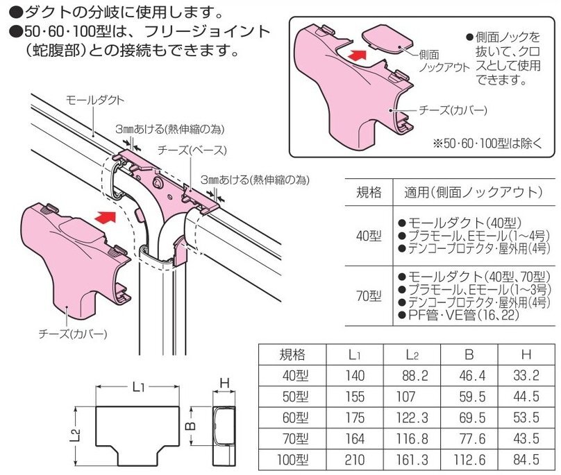 ●チーズ 70型 ブラック 屋外・屋内兼用 自己消火性樹脂製 モールダクト付属品