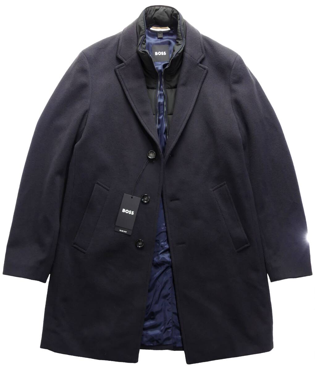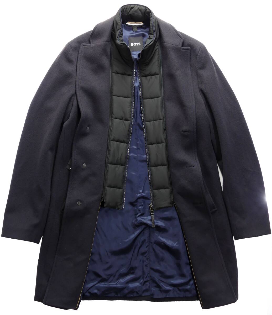 HUGO BOSS/ヒューゴ・ボス 防寒アタッチメント付。使える度もお洒落度も200%軽く柔らかフランネル濃紺チェスター ヒューゴ・ボス直営店購入の正規品新品です