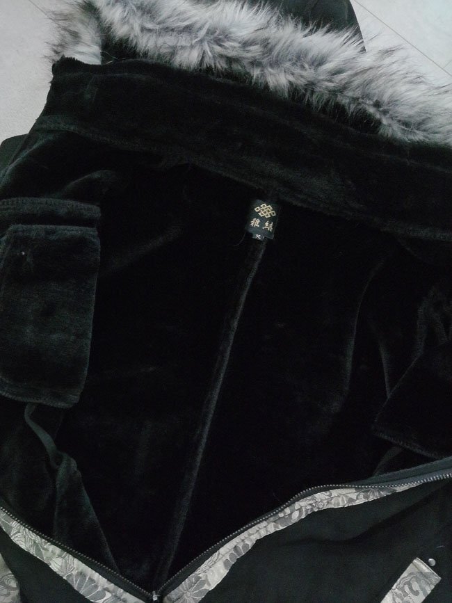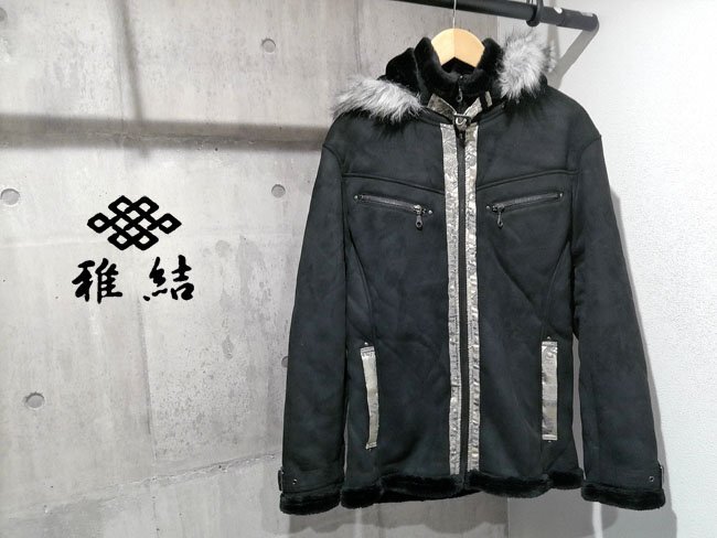 | 商品の詳細 | 商品名 | 流儀圧搾 雅結 ミヤビムスビ 取り外しファーフード付き 和柄ちりめん切替 フェイクムートン ジャケット 特大 XL/フライトジャケット/黒 ブラック/メンズ/873026CS/程度良好 4791 |