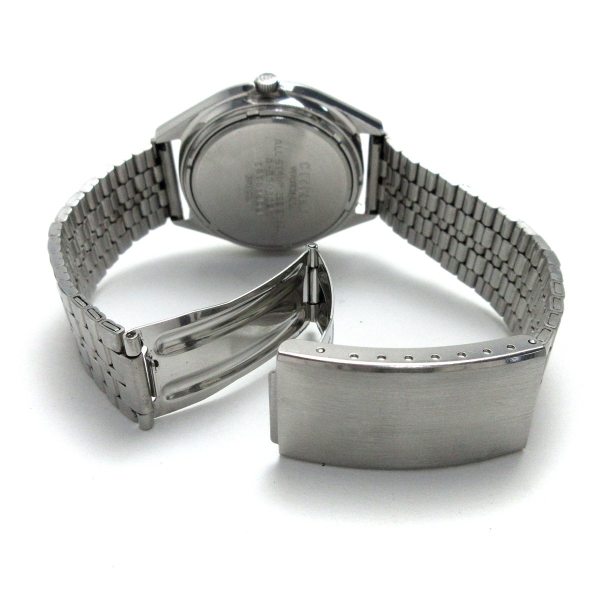 ■東京に本社をおく日本の精密・電子機器製造会社『シチズン(CITIZEN)』。 ■1974年に誕生した『クリストロン(CRYSTRON)』。 ■アラビア数字のインデックス、アップライトされ視認性良好。スタイリッシュな印象。 ■シリアル「50******」です。 ■市場流通数の少ない希少なモデル。 ■コレクションや部品取りにおすすめのヴィンテージウォッチです。 ◎スクリューバック。 ◎Dバックル。 ---【商品状態】--- ☆不動品、針操作は可能です。 詳細は分からないためジャンク扱いとさせていただきます。 ☆外装、クリーニング済、小キズはありますが比較的キレイです。 ☆風防に小キズがあります。 ☆ブレス(社外品)、サイズはコマ調整にて短くする事ができます。 ☆中古商品のため防水性の保障はつきませんのでご了承ください。 ※商品画像はお客様のモニター環境によっては色調が異なって見える場合がございますのでご了承ください。 |