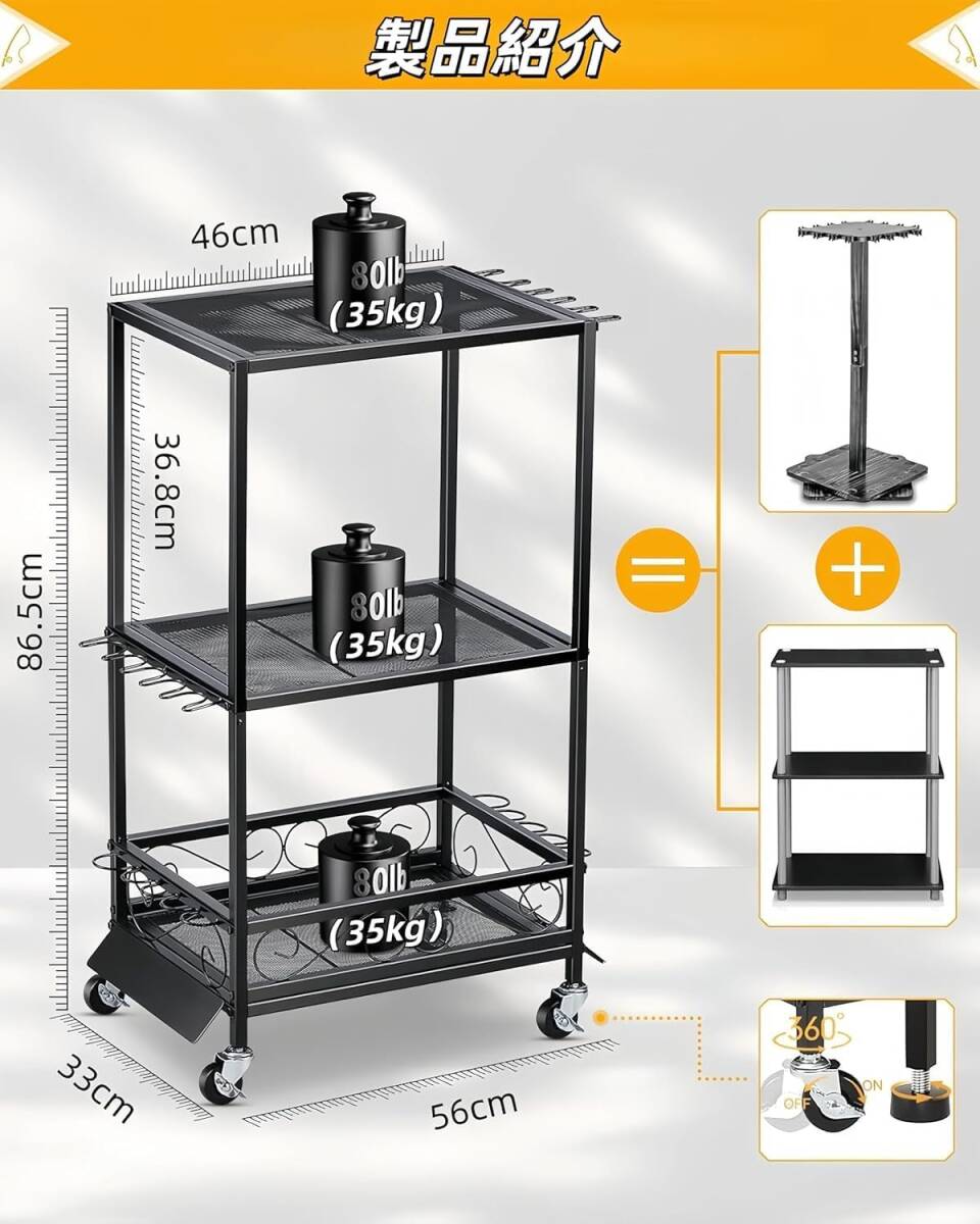 | 【多様な釣り道具や収納ボックスに対応】Jumeiロッドスタンドは、3段の大容量設計を採用しており、さまざまな釣り道具や収納ボックスを簡単に収納できます。大型の釣り具から小さなアクセサリーまで、多くのアイテムをしっかりと整理できるため、釣り好きの方には欠かせないアイテムです。空間を最大限に活用し、必要なものをすぐに取り出せる便利な設計です。 【様々な釣り竿を収納】最大10本の釣り竿を収納できる高機能なタックル収納カートです。リップルブラケットにより、釣り竿とリールのコンボが整理整頓され、取り出しも簡単です。革新的なデザインにより、最大4cmのサイズの釣り竿を置くことができます。ルアーロッド、磯釣り竿、タモ網なども収納可能で、様々な釣り道具に対応し、釣り愛好者には嬉しいポイントです。 【360°回転キャスター付きで移動がスムーズに】360°回転する万向キャスターが搭載されており、簡単に移動ができ、ブレーキ機能も備えています。使いたい場所に簡単に移動できるので、室内での使用はもちろん、外での使用にも便利です。移動後は、ブレーキをかけてしっかりと固定できるため、安全に使用することができます。 【頑丈で耐久性に優れ】主体は2.0mmの厚い炭素鋼から成り、表面は強く、圧縮抵抗力がある反錆の静電気噴霧と扱われます。 単層の耐荷重能力は35kgであり、フレーム全体の耐荷重能力は100kgです。頑丈な海の棒および石釣装置の長期貯蔵は変形しないし、耐久であり、家族の倉庫、ガレージおよび釣具店のような場面のために適している。L121 |