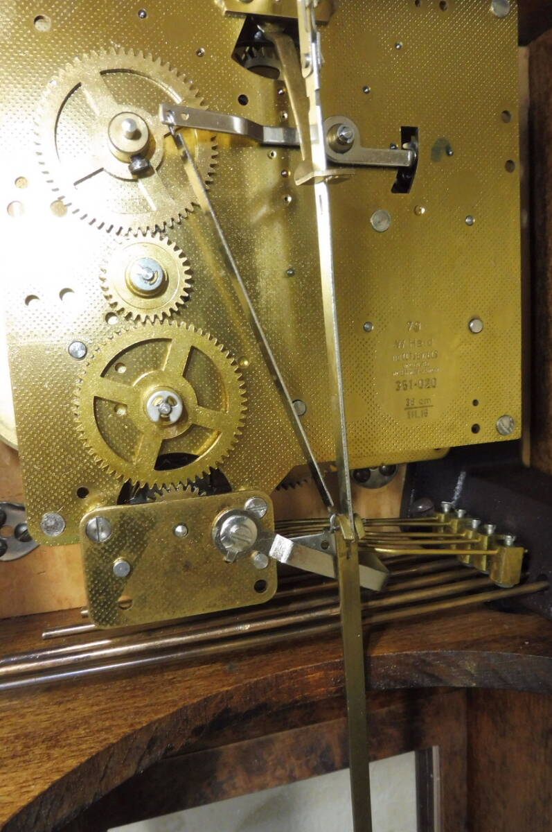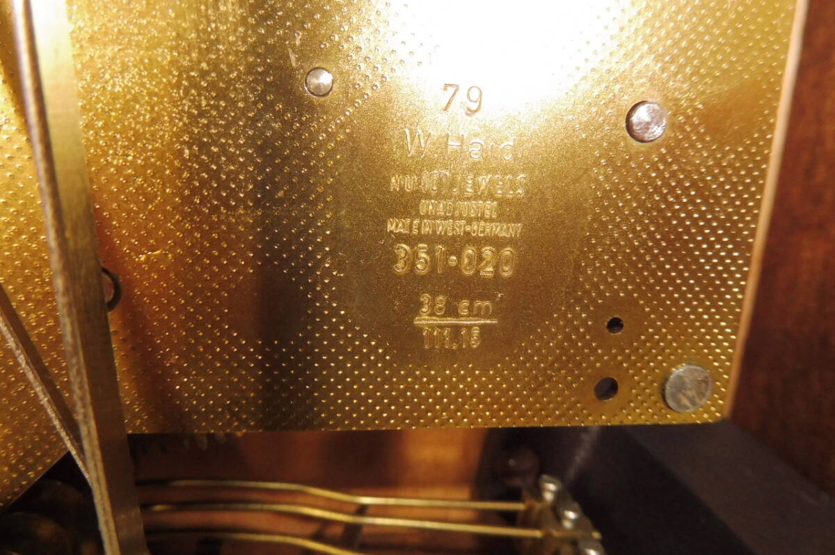 ゼンマイを巻く所は、3か所あり、向かって、右側は、チャイム用、真ん中は、運針用(動力用)左は、時打ち用です。