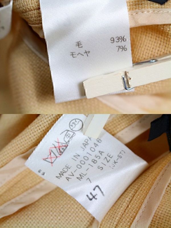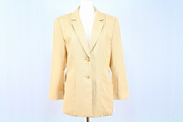 ※肩パットが付いています。 【表記サイズ】7 【カラー】肌色系 ※撮影時や画面の明るさにより色が変わる場合がありますのでご了承ください。 【実寸サイズ】肩幅 37㎝・着丈 65㎝・身幅 90㎝・袖丈 52.5㎝ ※平置き素人採寸の為、多少の誤差はご理解下さい。 【商品状態】 画像7枚目上のように薄くシミがありますがシミ以外は目立った汚れやダメージ見られません。 ※一人で状態確認をしています。見落とす場合もありますのでご了承下さい。 |