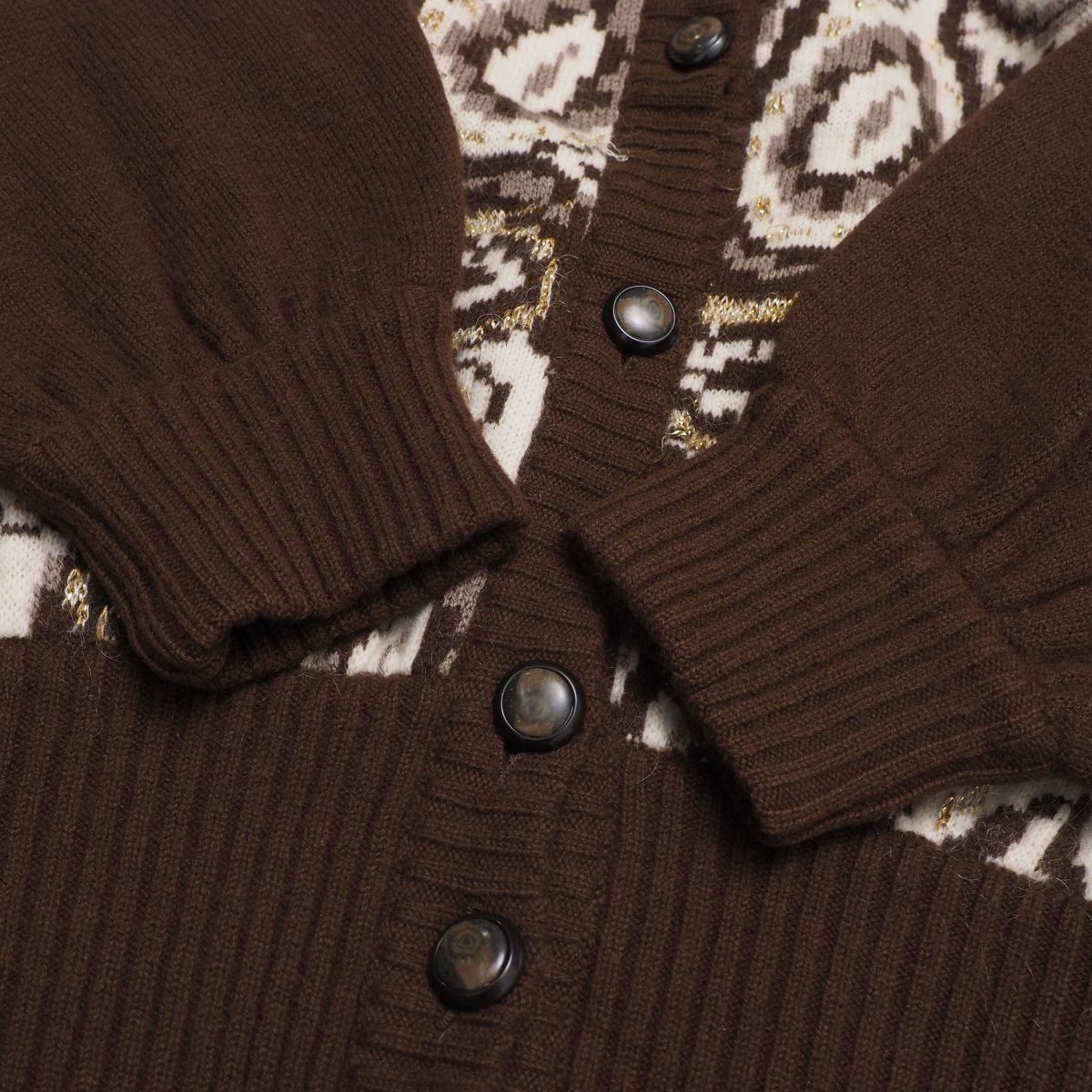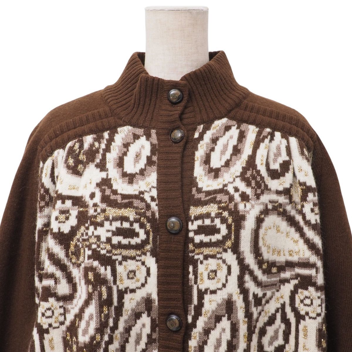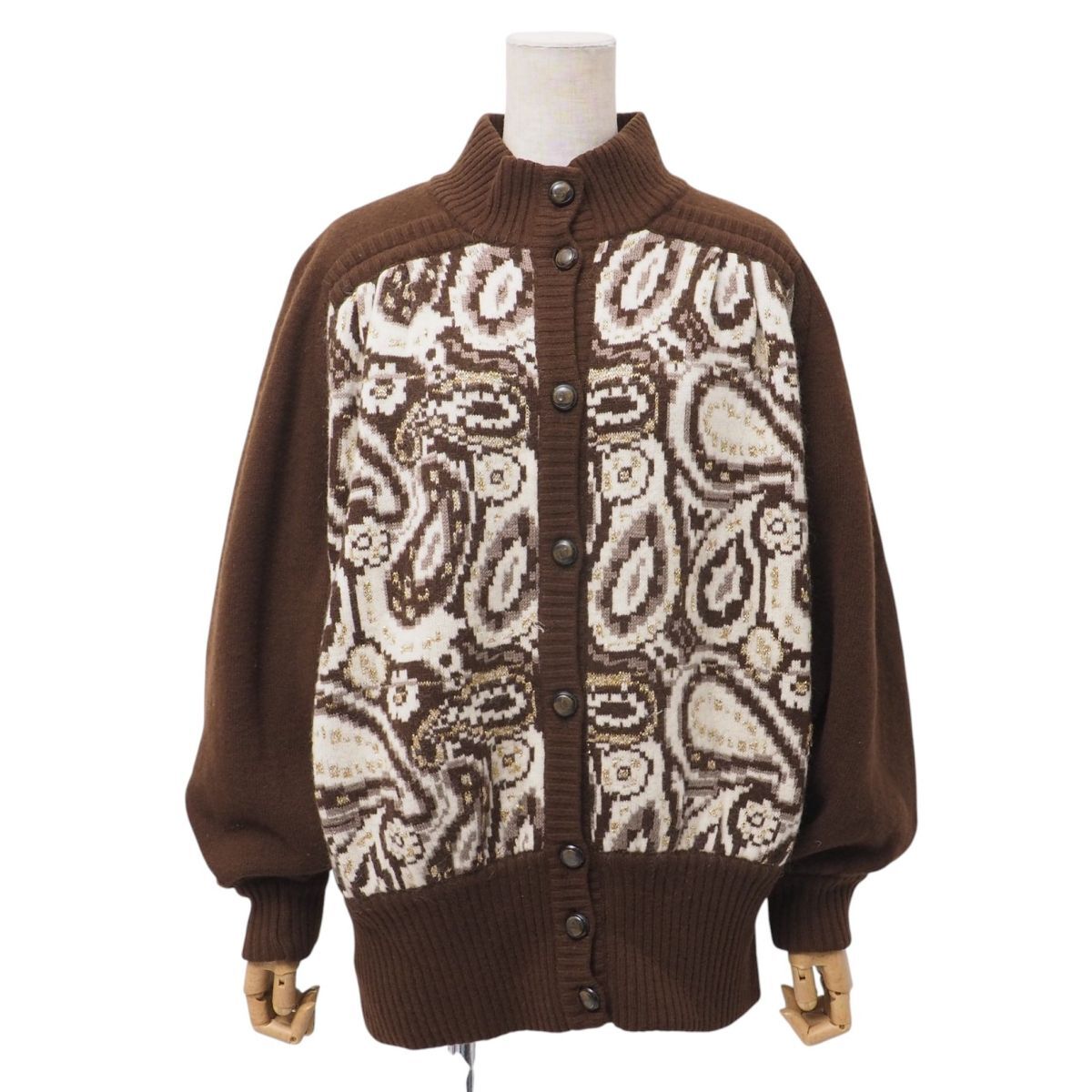 | TJ3286☆ポーシャル poushal ペイズリー柄 ニットカーディガン ニットジャケット スタンドカラー ウール ブラウン系 サイズ40 | |||
